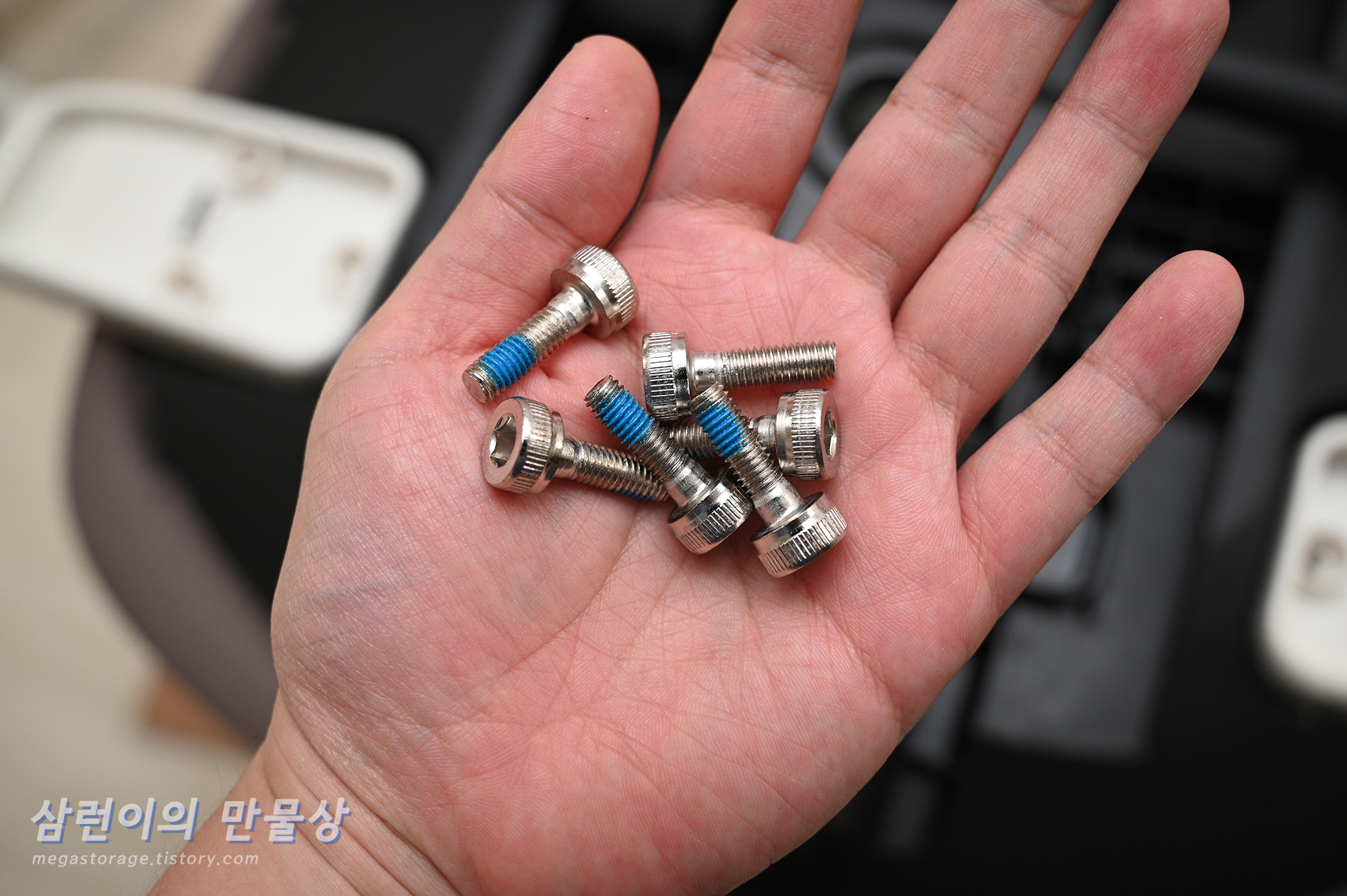 동봉되어 있는 '팔걸이 조립 볼트' 6개를 준비합니다. 위 사진처럼 생겼습니다.