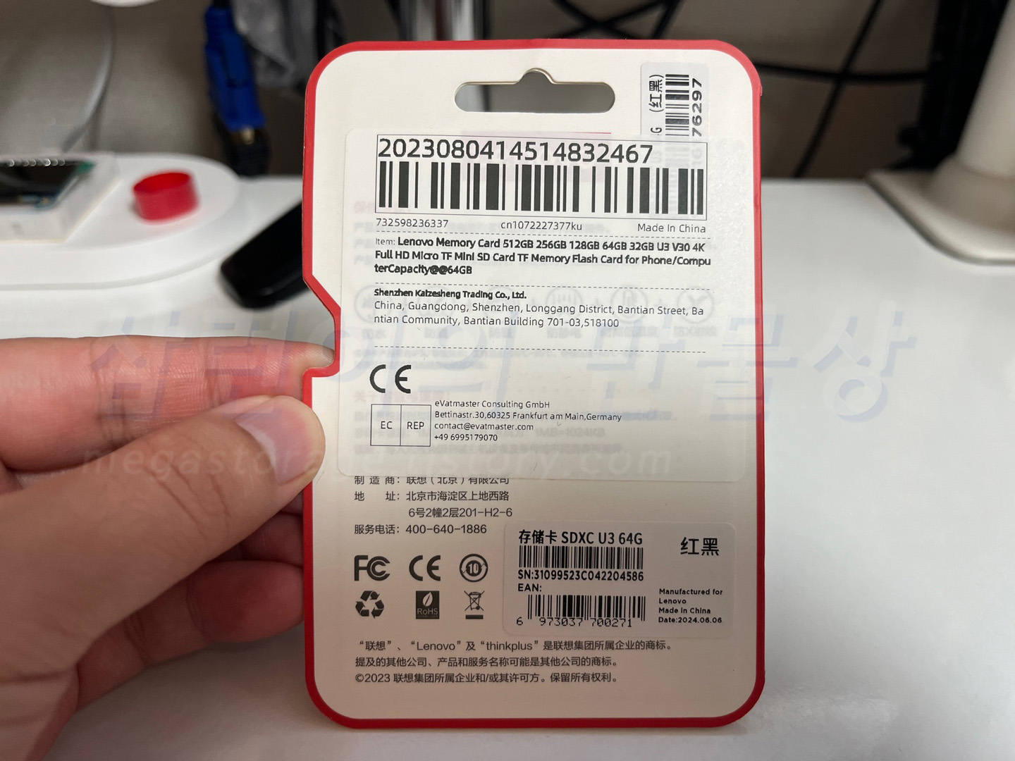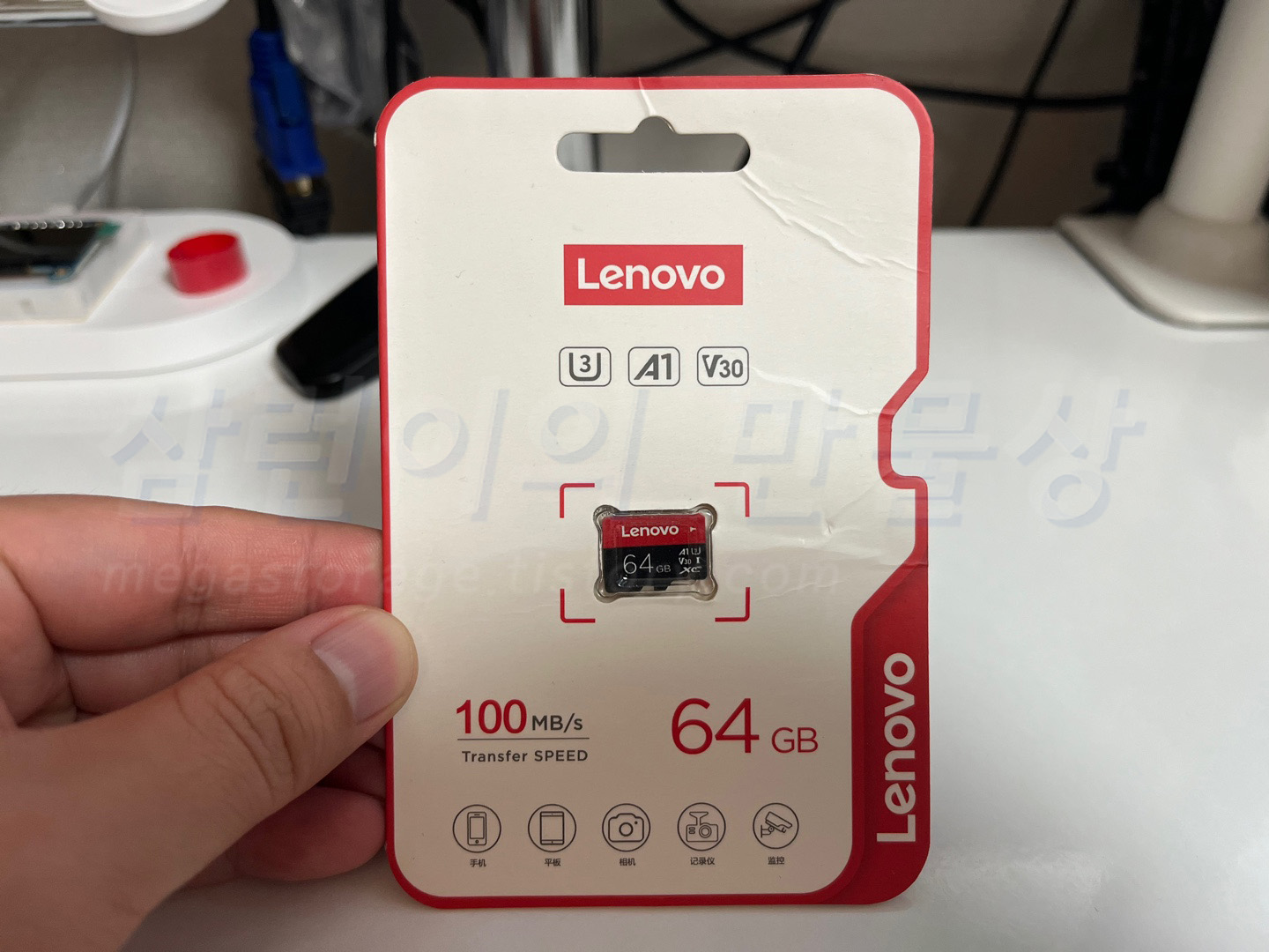Lenovo microSD 64GB 입니다. 빨간색과 검정색의 조화가 예쁩니다.