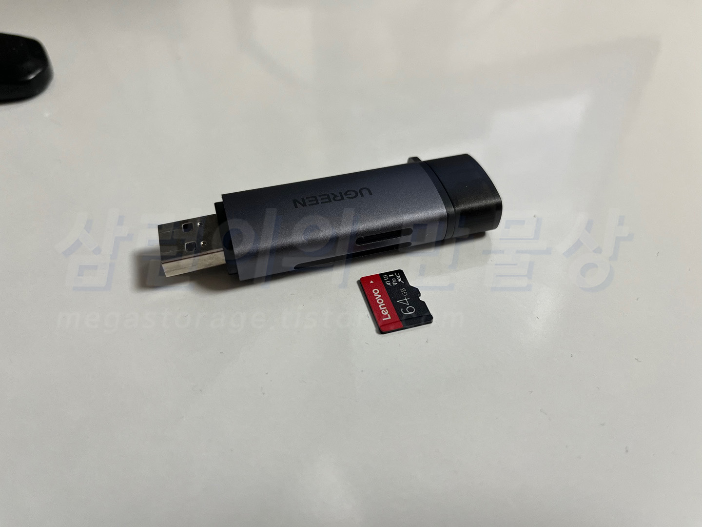 Lenovo microSD 64GB 메모리를 PC에 연결해 볼 것입니다. 예전에 알리 익스프레스에서 구매한 후 잘 사용하고 있는 UGREEN(유그린)의 메모리 리더기에 장착할 것입니다. 참고로 해당 리더기는 USB 3.0 스펙을 가집니다.