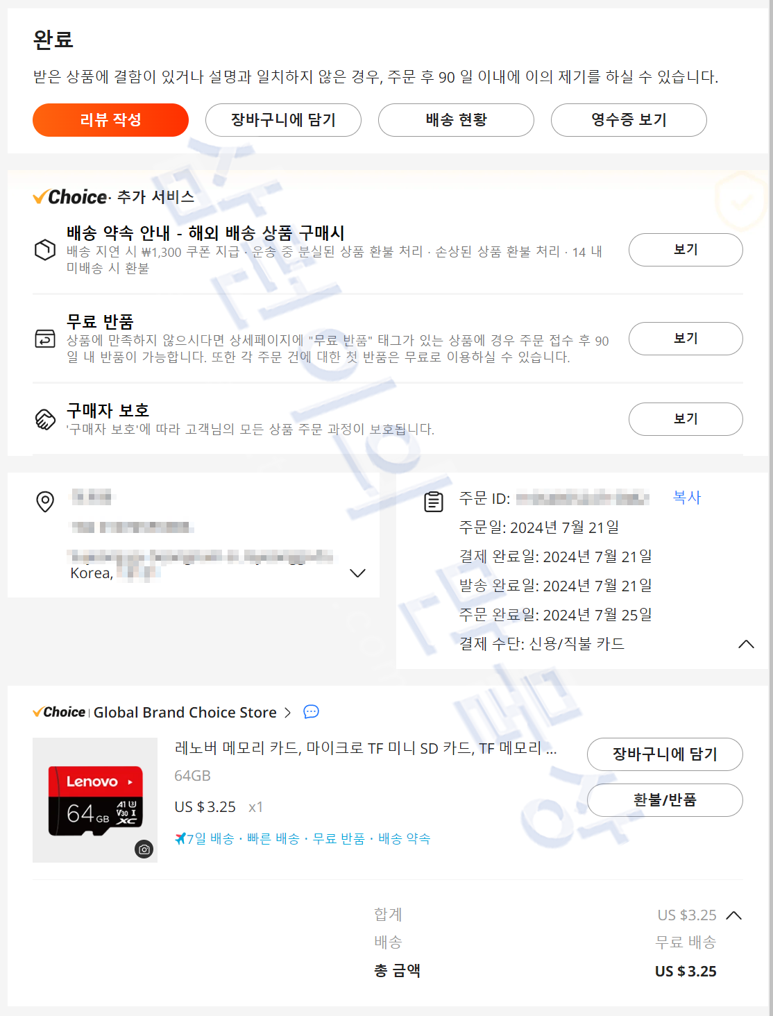 알리 익스프레스에서 레노버(Lenovo) microSD 카드 64GB 모델을 3.25달러에 구매했습니다. 약 4,500원 입니다. 2024년 7월 21일에 구매했고 4일 뒤인 7월 25일에 수령했습니다. 수령 후 방치해놨다가 오늘(8월 8일) 개봉 및 테스트를 진행했습니다.