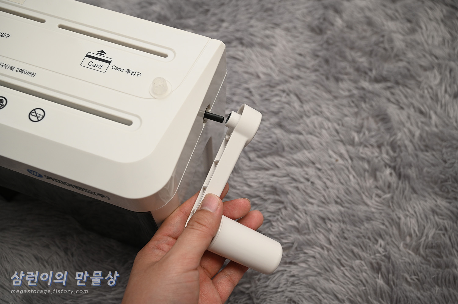 카피어랜드 S190 수동 세단기는 말 그대로 "수동"이기 때문에 손잡이가 있어야 사용 할 수 있습니다.