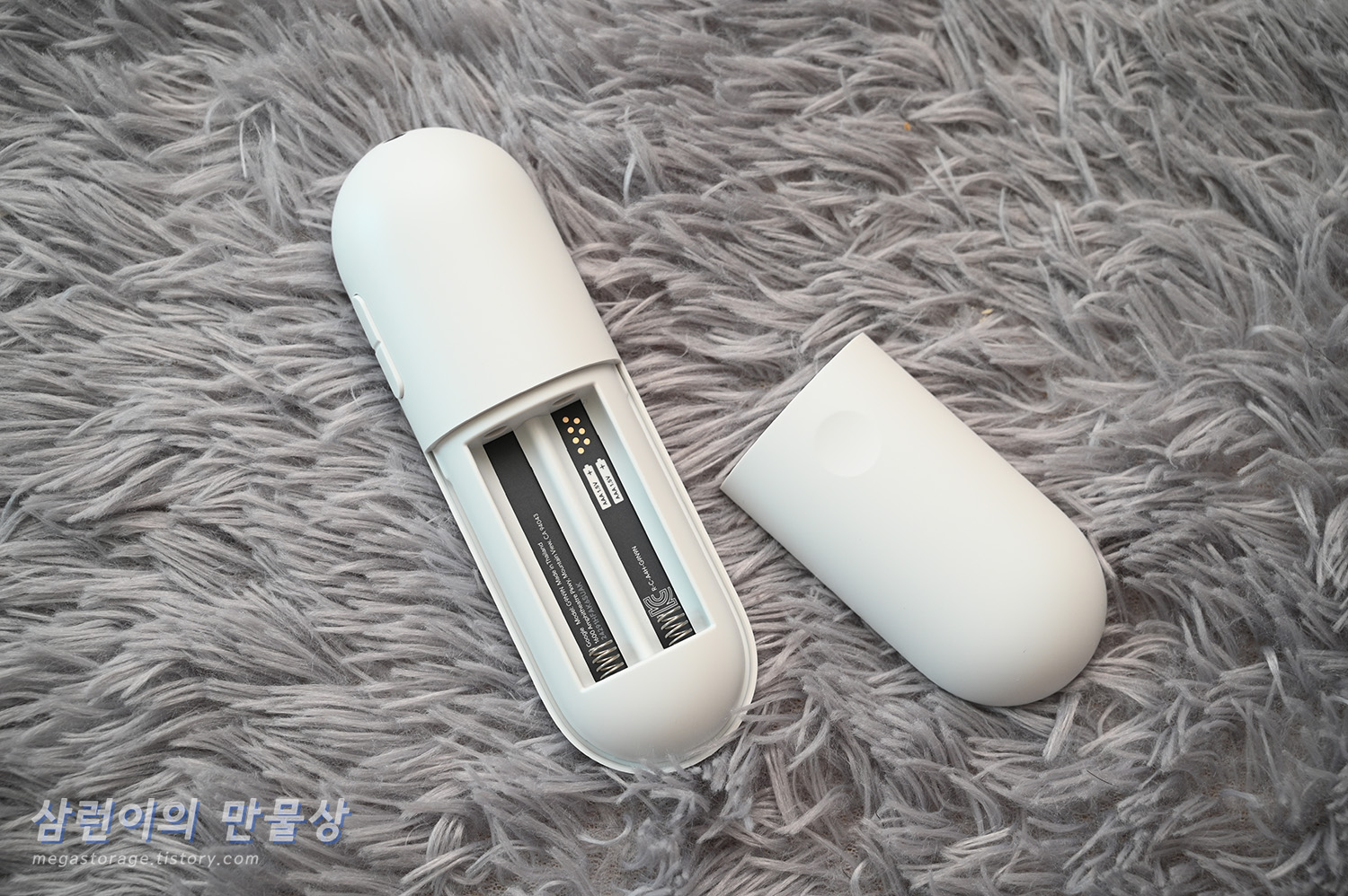 동봉된 AAA 배터리 2개를 리모컨 뒤에 장착했습니다.