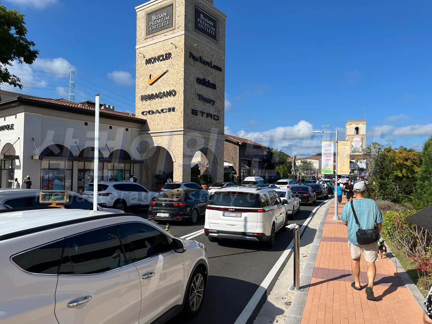 부산 신세계 프리미엄 아울렛 입구에 도착했습니다. 차가 꽤 많습니다. 여기서 차들이 거의 움직이질 못합니다.