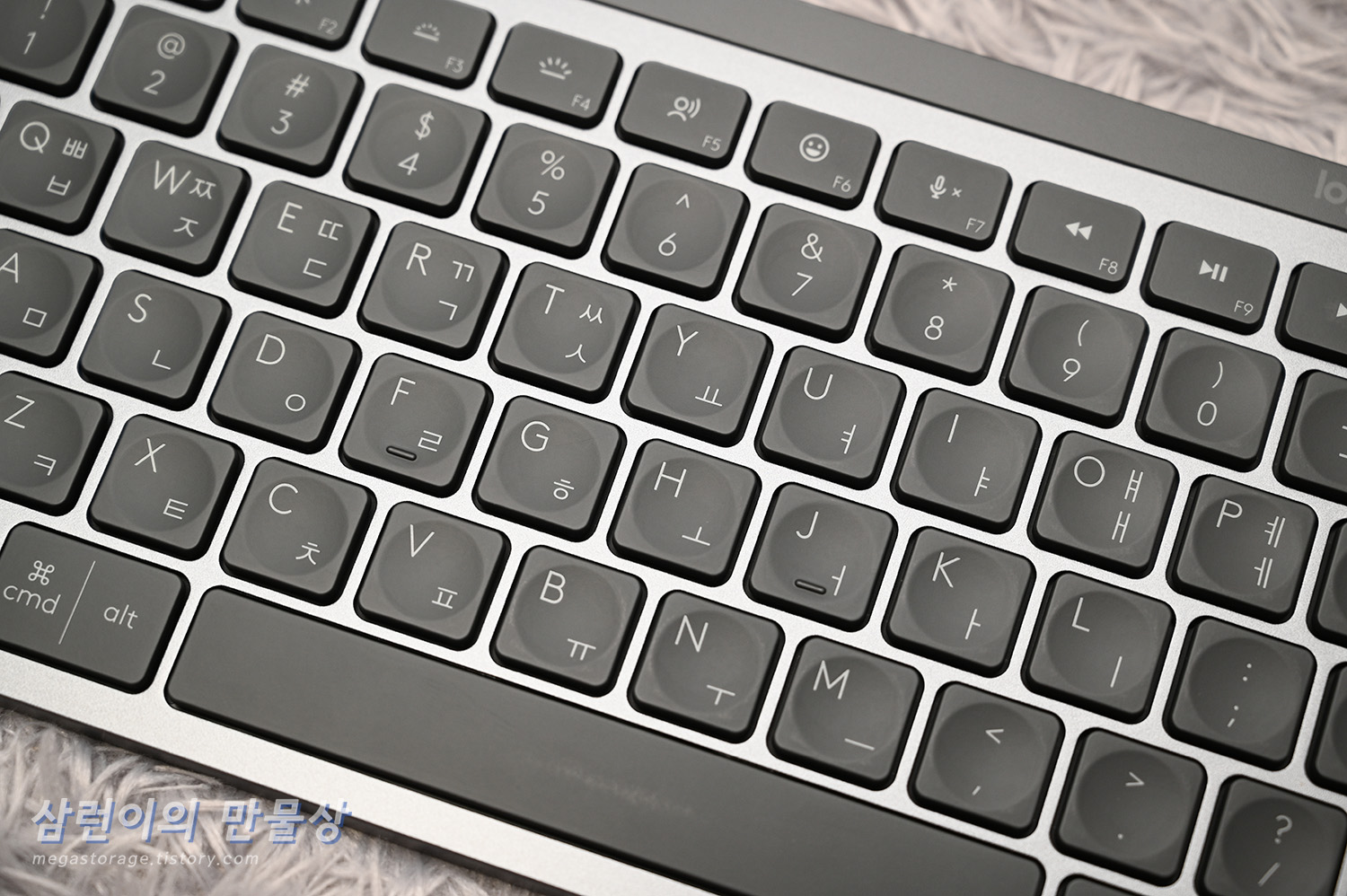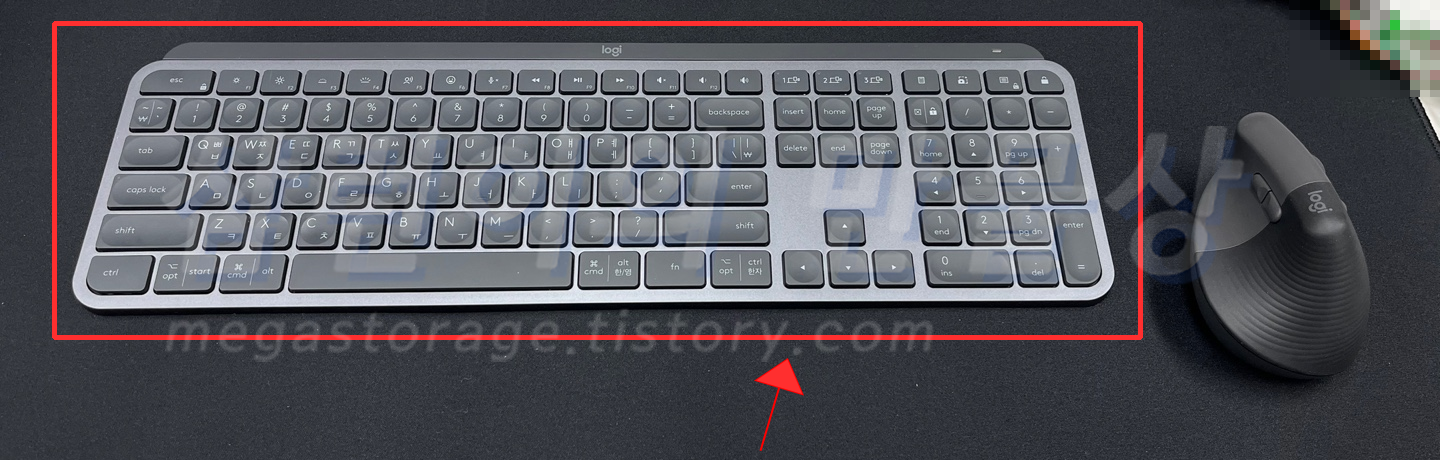 - 상단 F1 ~ F12키의 기본 동작이 특수 기능입니다. 초기엔 F1 ~ F12 키를 쓰려면 fn 키를 같이 눌러줘야 하는 불편함이 있으나 'Logi Options' 프로그램을 설치한 후 설정을 바꿔주거나 'fn + Esc' 키 입력으로 기본 동작을 바꿔줄 수 있어서 큰 불편함은 아닙니다.