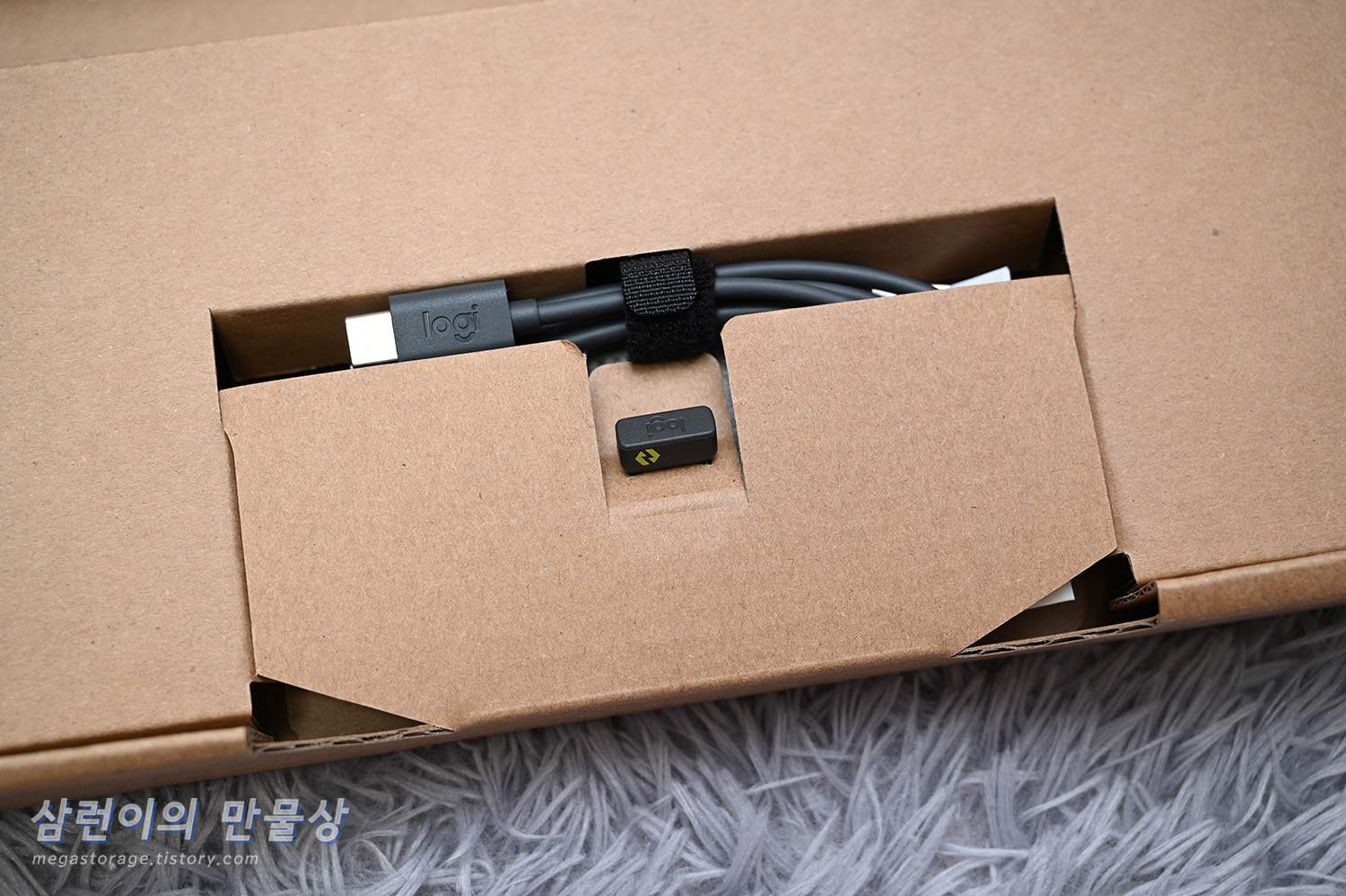 동봉된 USB-A to USB-C 케이블입니다. 로지텍 로고(logi)가 박혀있는 케이블입니다.