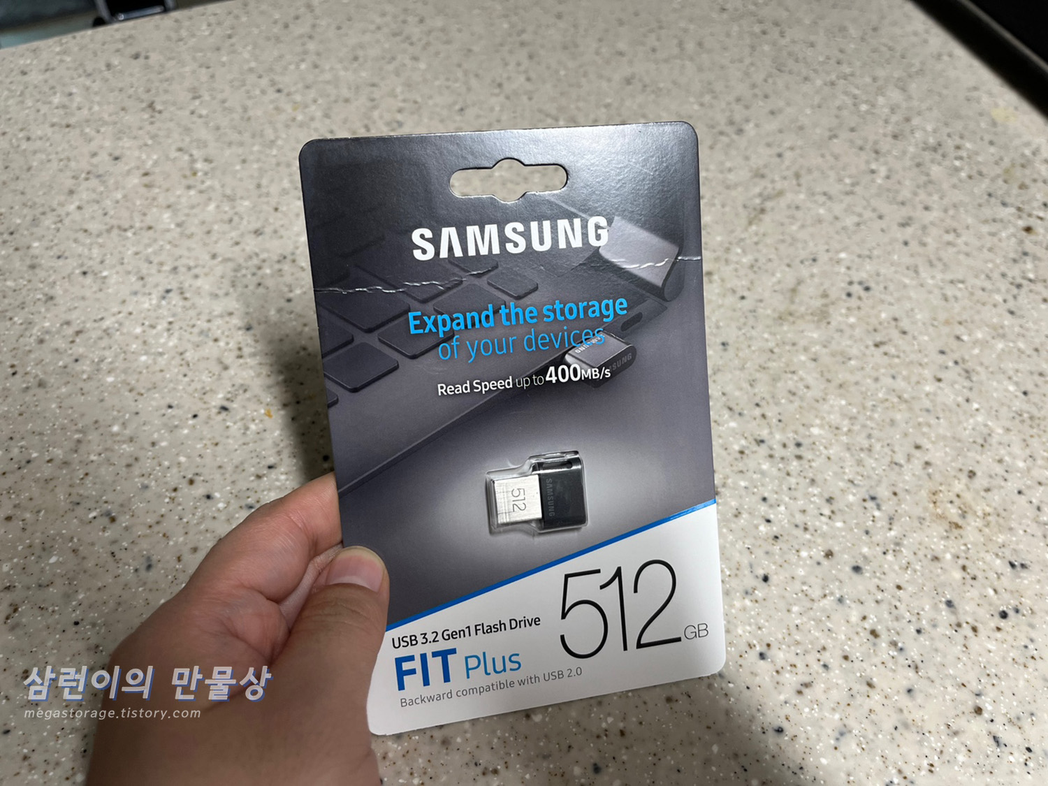 삼성전자의 FIT Plus 512GB 입니다. 읽기 최대 400MB/s 라고 적혀있습니다.