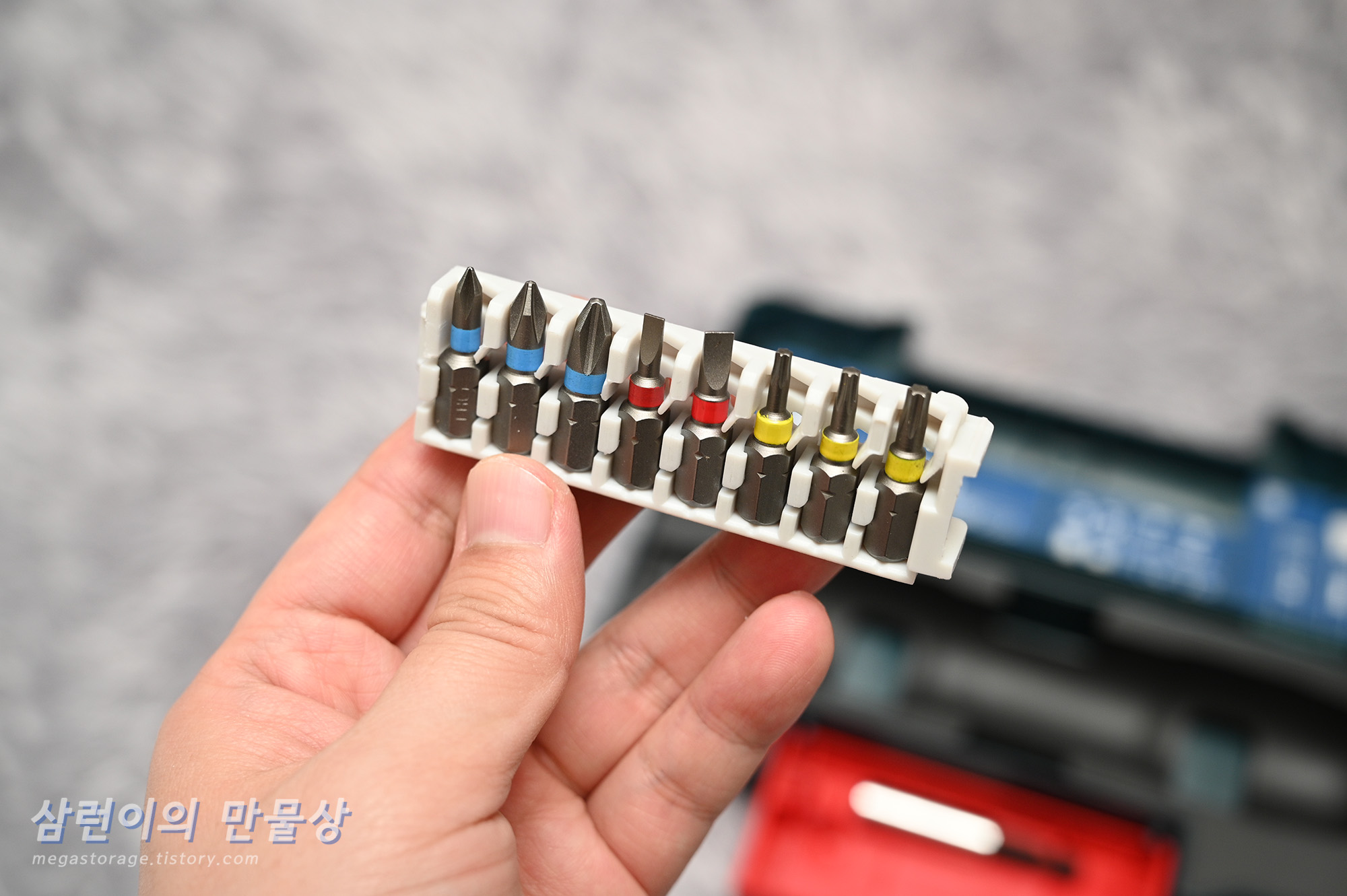 비트를 장착한 상태에서 보관을 할 수도 있습니다. 자주 쓰는 비트 장착한 후 위 사진처럼 보관하면 좋네요.