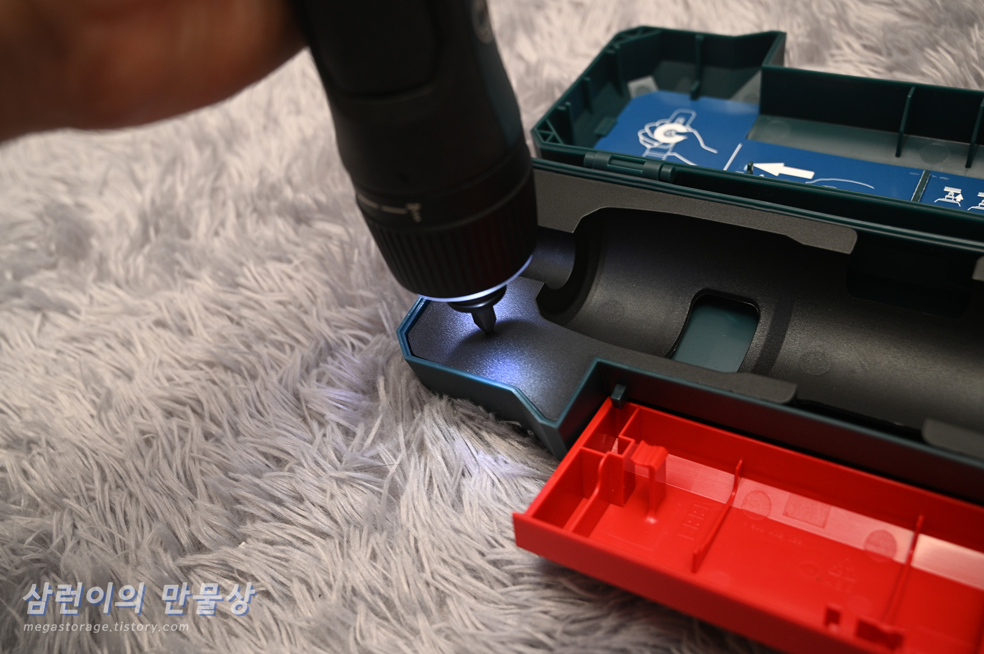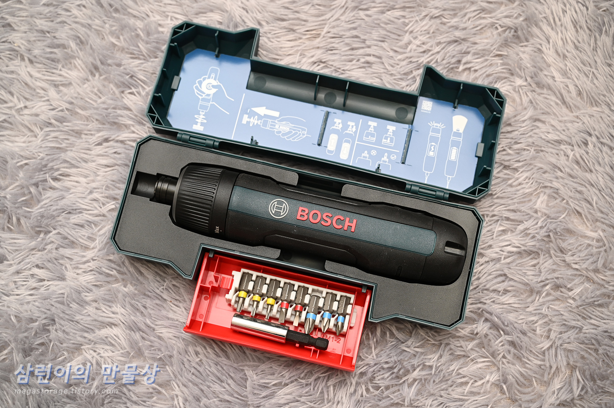 보쉬 고 3세대 본체 박스를 열면 전동 드라이버와 드라이버 비트가 보입니다.