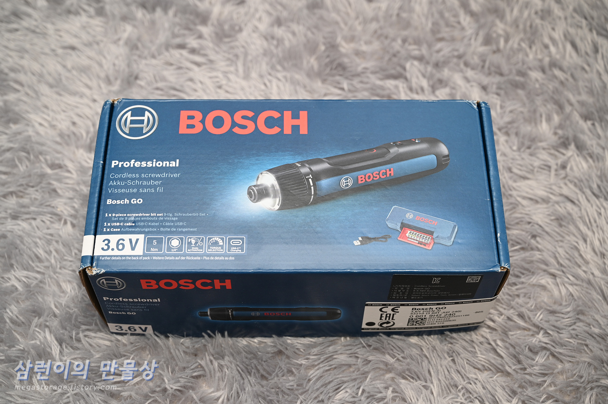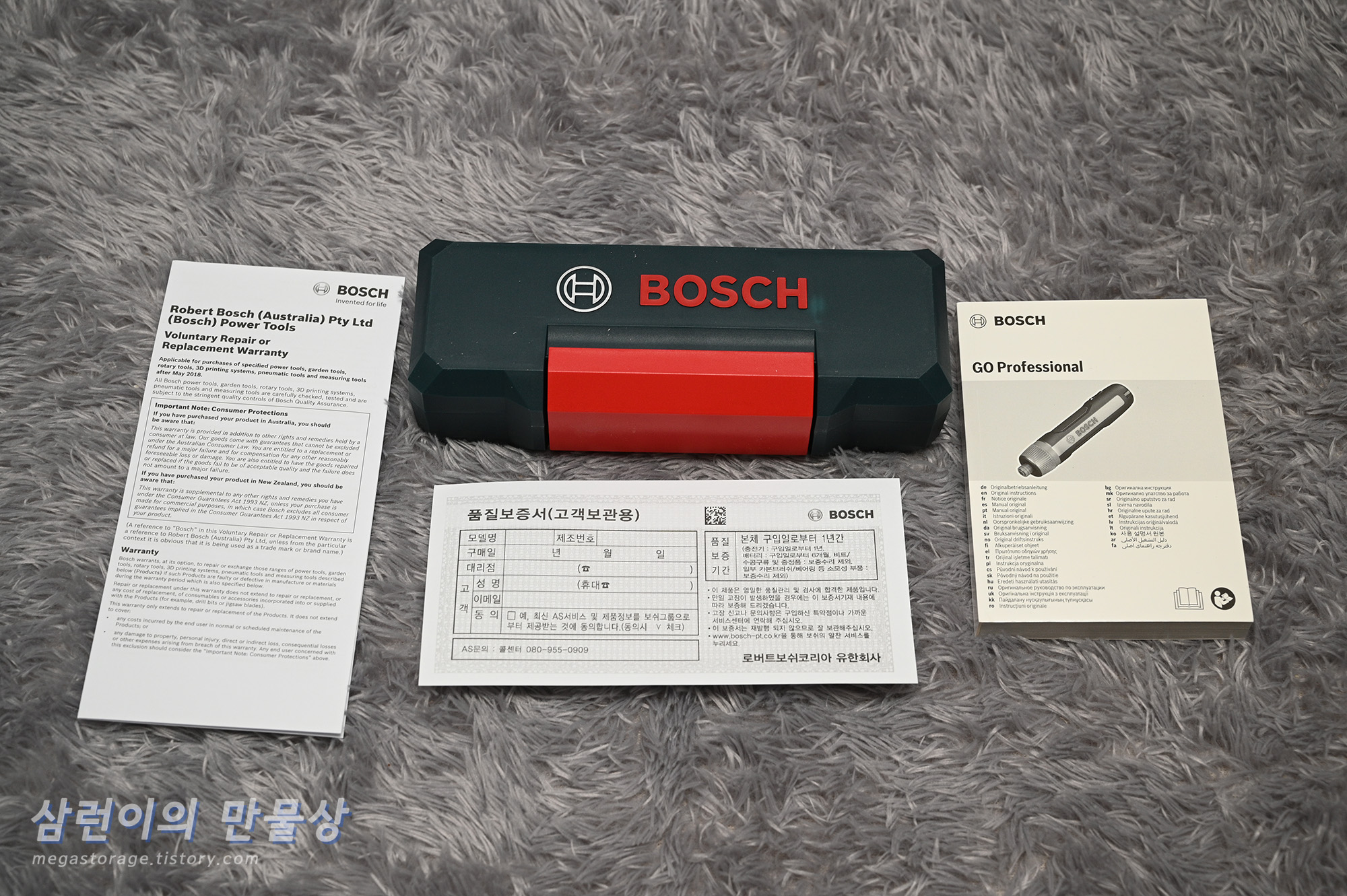 보쉬 고 3세대의 전체 구성품입니다. 드라이버 본체박스, 사용자 매뉴얼, 품질 보증서입니다.