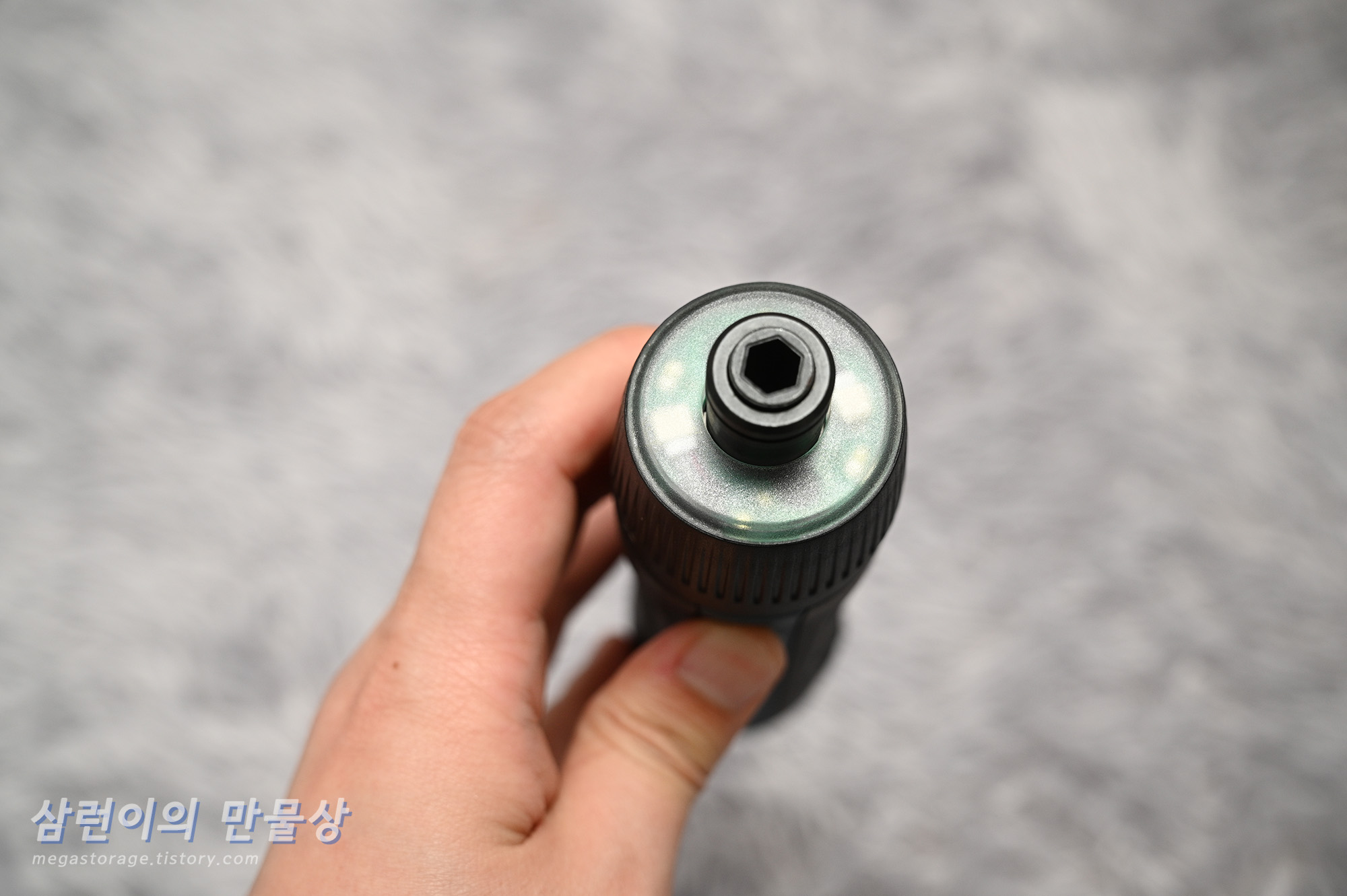 드라이버 비트를 장착하는 부분입니다. LED 라이트도 같이 있습니다.