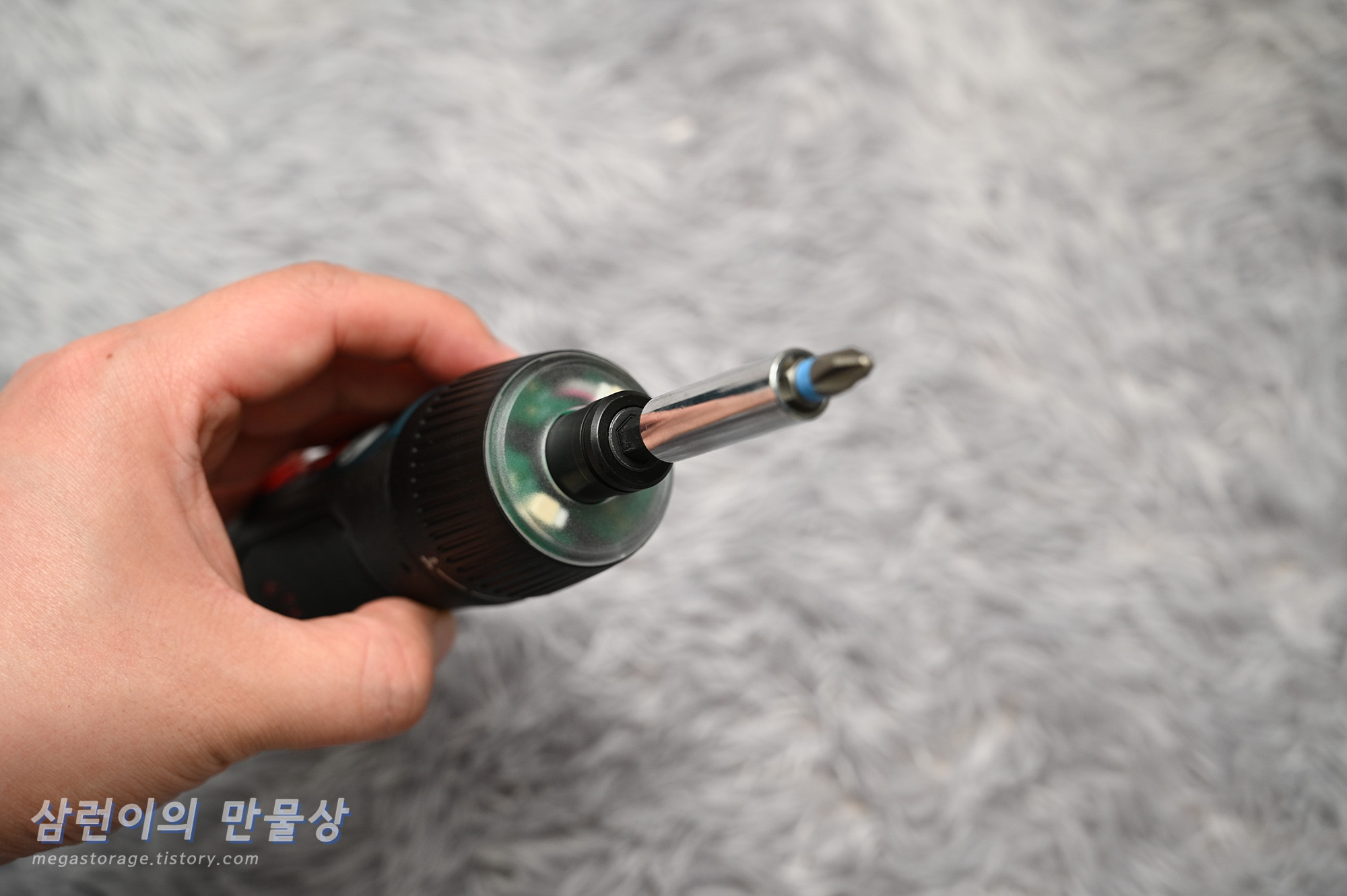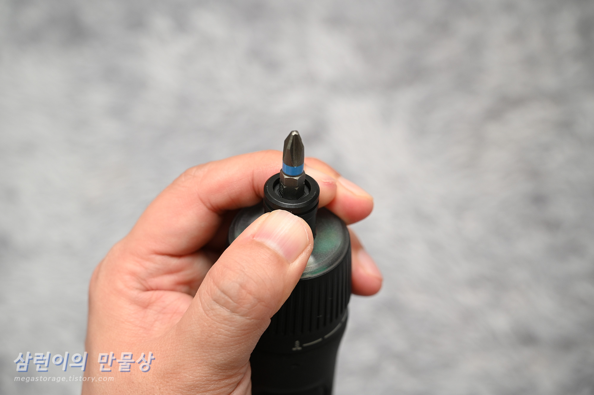 동봉된 비트를 장착하는 과정은 간편합니다. 앞쪽 장착하는 부분을 밑으로 내린 후 비트를 장착합니다.