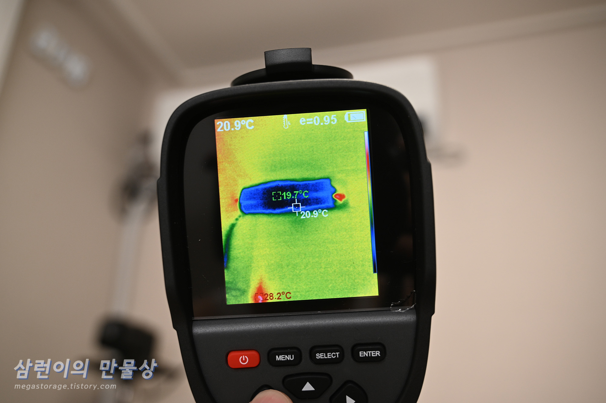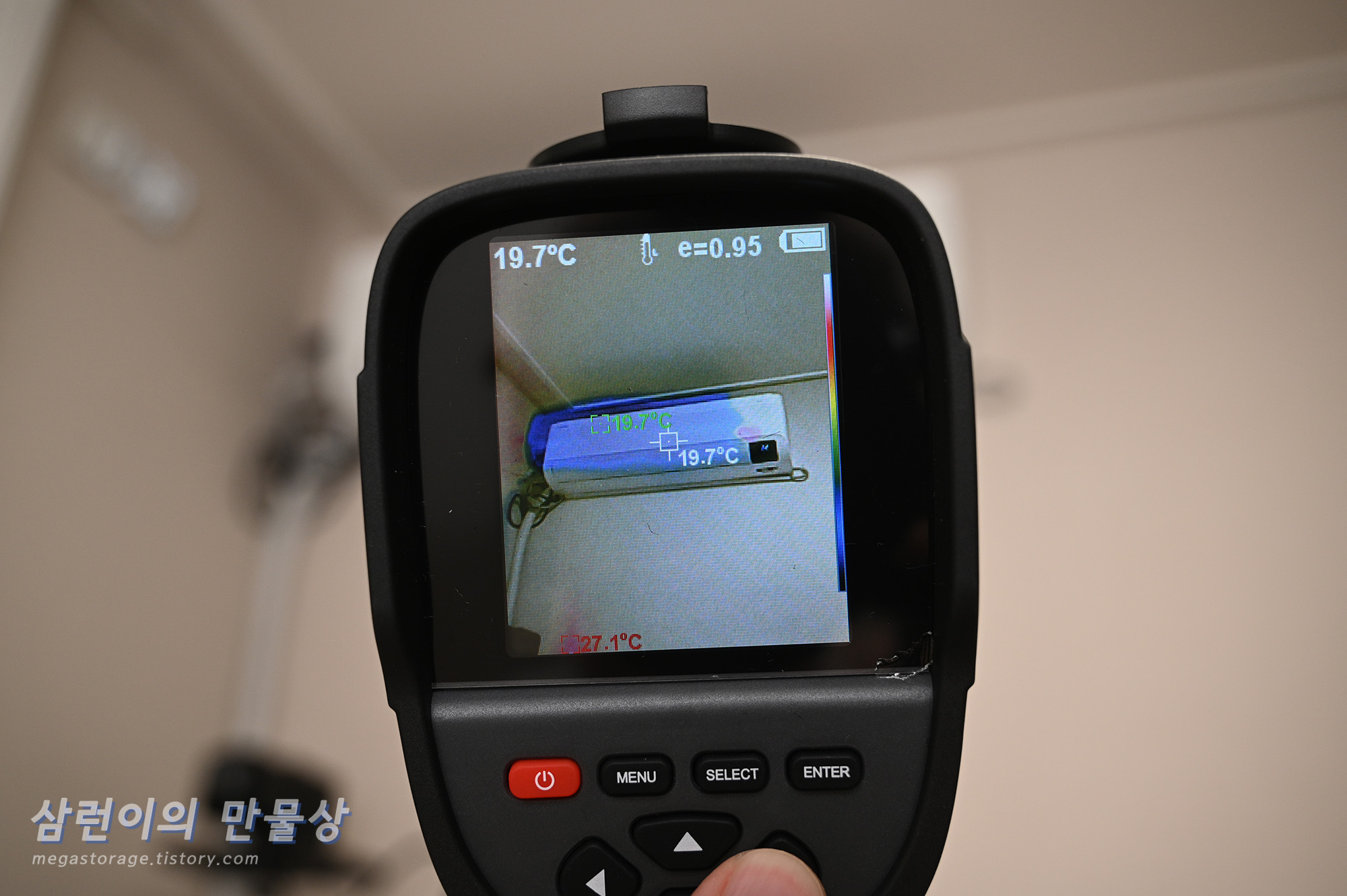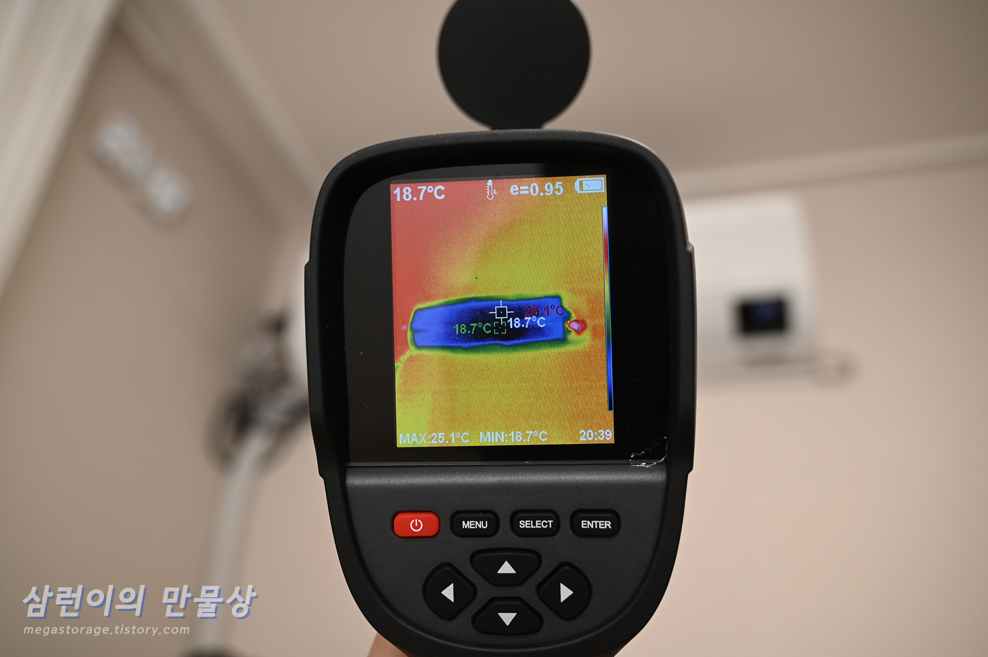 열화상 모드가 아닌, 일반 사진모드에서도 깔끔하게 잘 측정됩니다. 제 노트북을 측정해봤습니다.