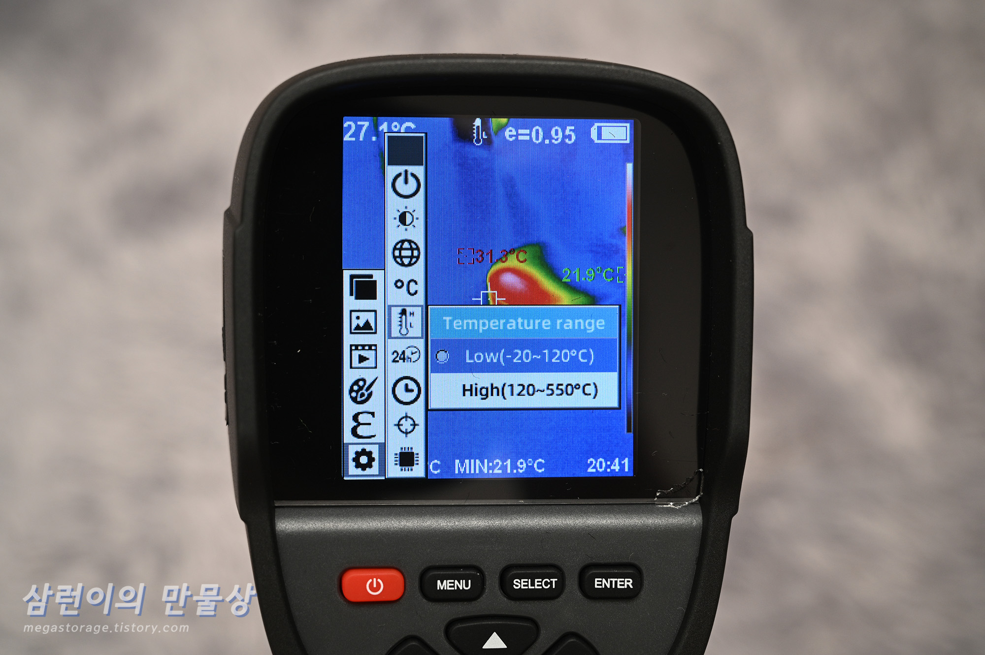 온도 범위는 -20~120도 또는 120~550도로 설정할 수 있습니다.