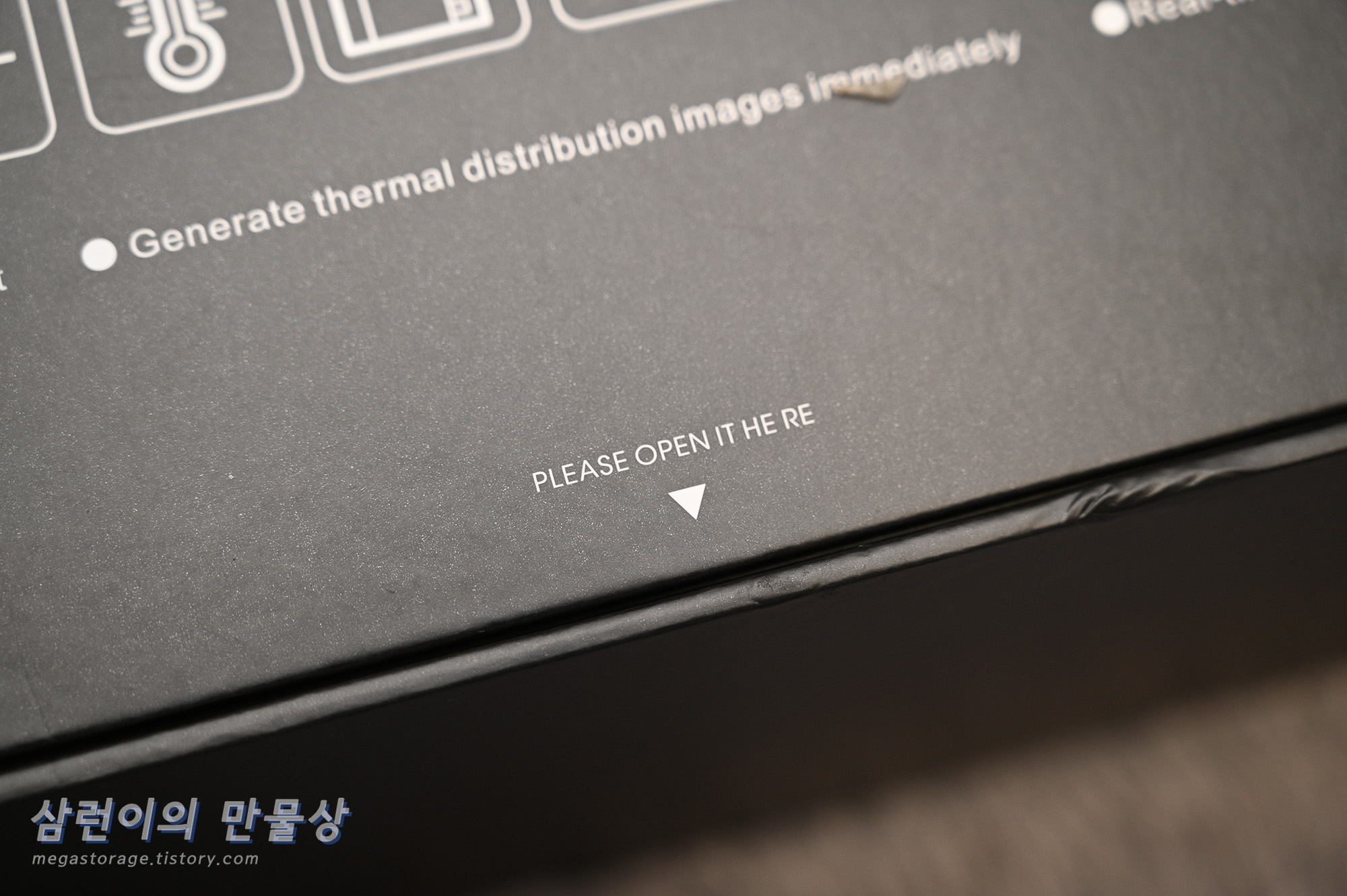 GOYOJO GW256 열화상 카메라 박스 측면 하단에는 이쪽으로 열어달라는 문구가 있는데... "HERE" 사이에 스페이스바가 있네요. 불편합니다.