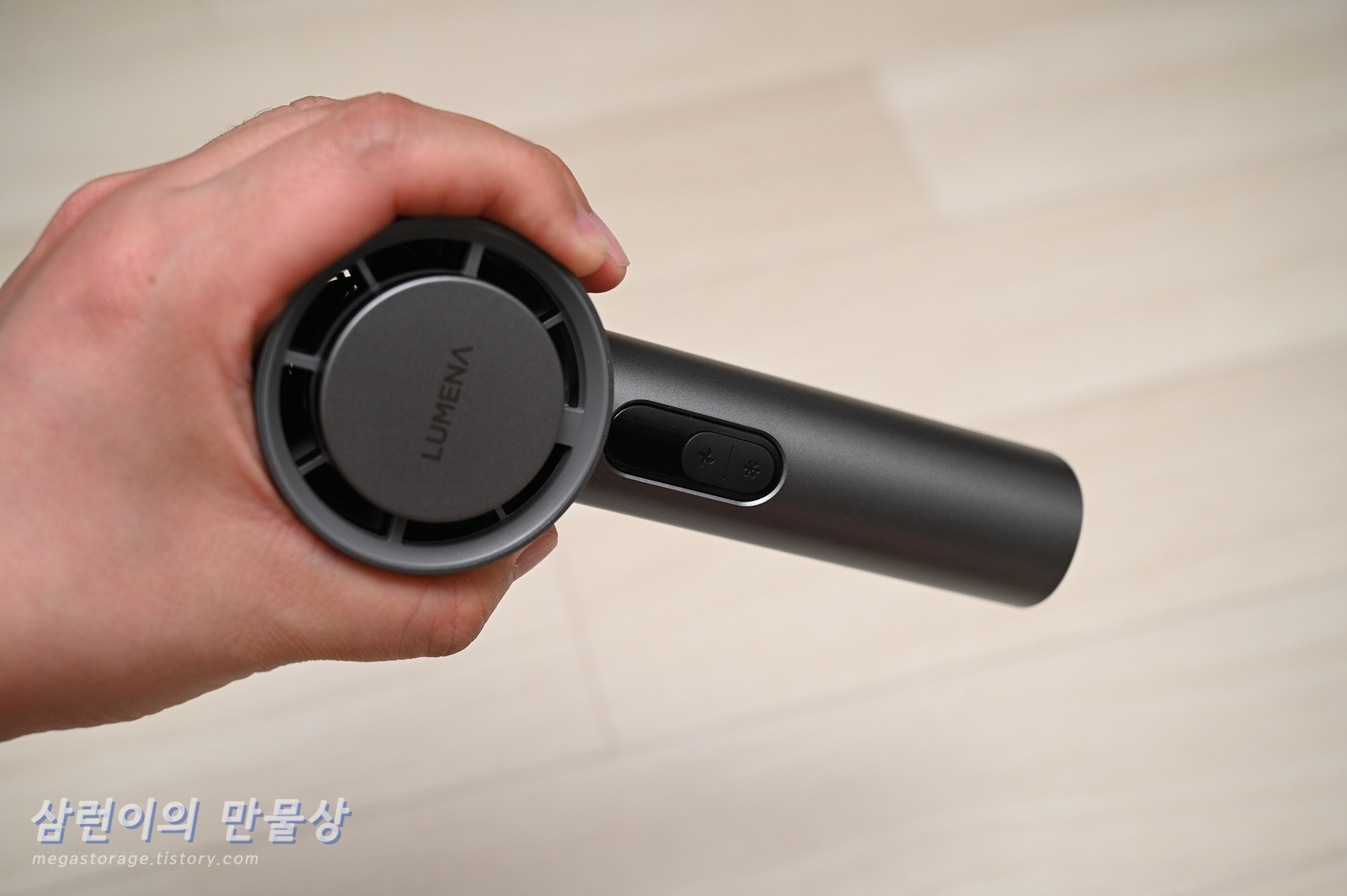 다른 휴대용 핸디 선풍기보다 조금 무겁긴 하지만, 무게 중심과 손가락으로 휘어잡는 느낌이 편안해서 무겁다고 생각되진 않았습니다. 실제로 출퇴근 길에 선풍기를 켠 후 손으로 들고다니는데 괜찮았습니다.