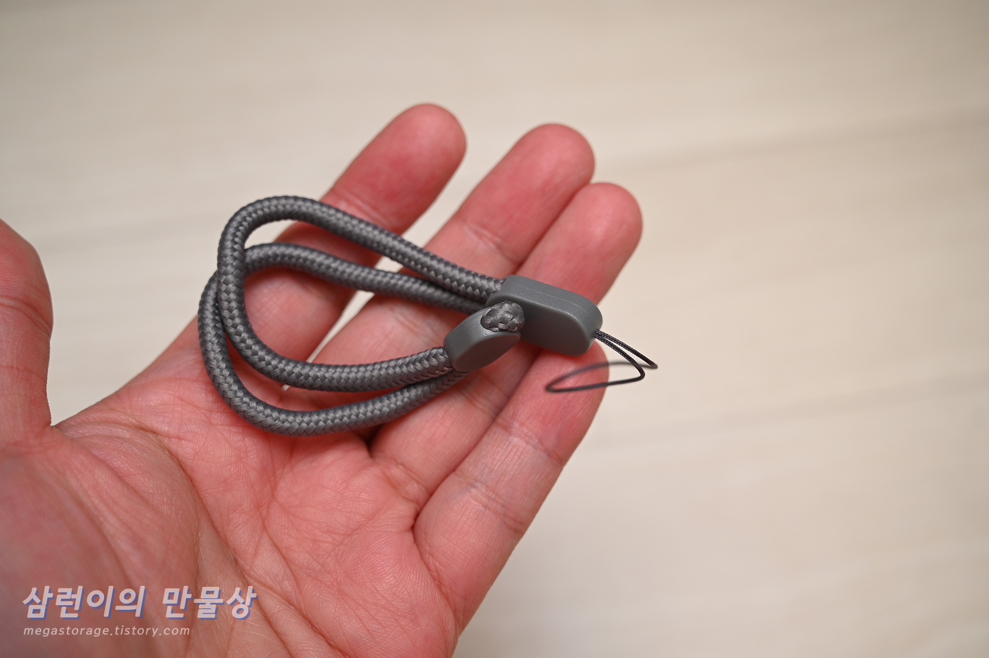 동봉된 스트랩을 걸어봤더니 꽤 편합니다. 스트랩을 손에 걸고 다니면 바닥에 떨어트릴 일이 없어서 좋네요.