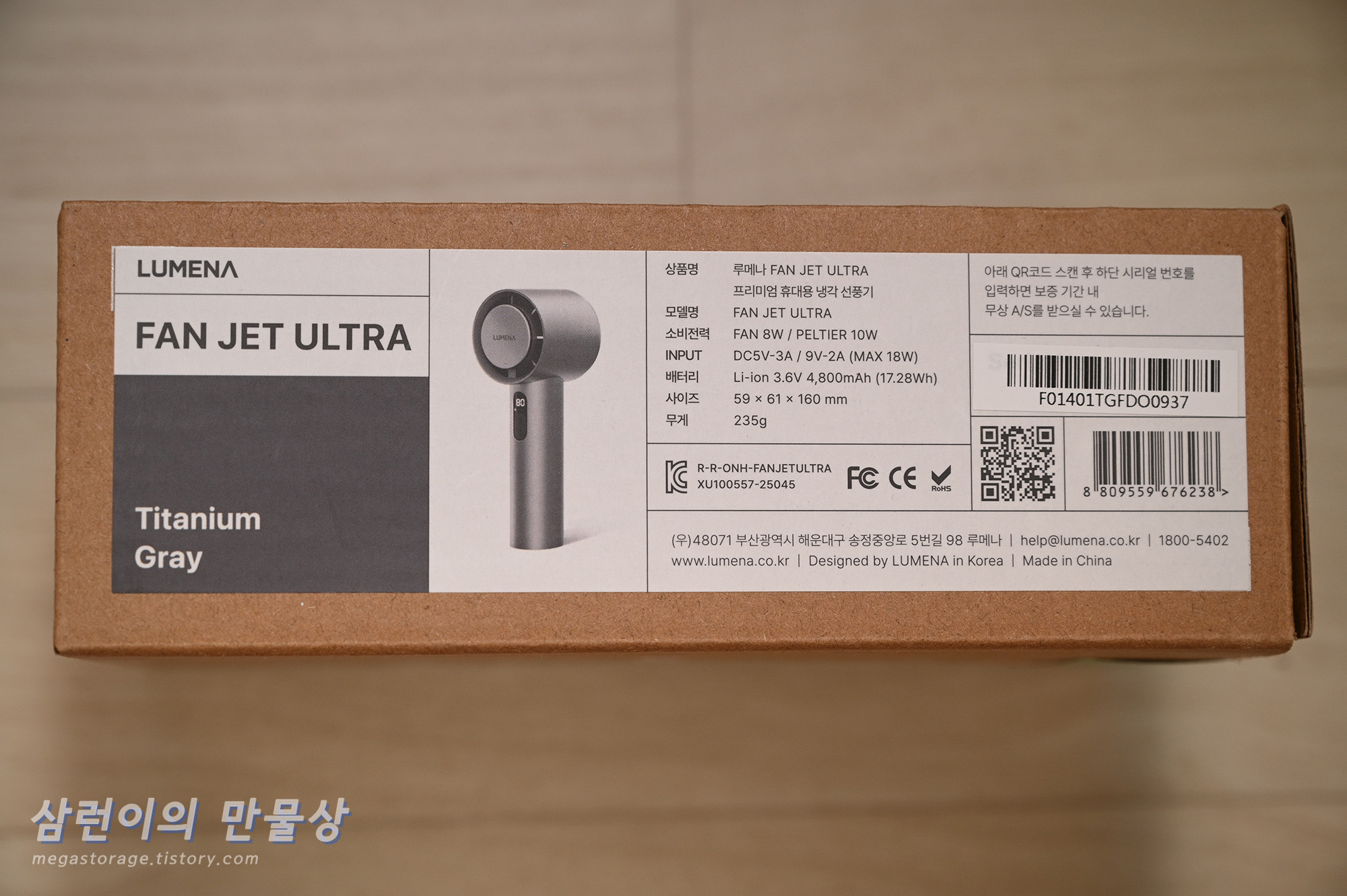 루메나 FAN JET ULTRA 모델의 티타늄 그레이 색상은 재고가 없어서 며칠 뒤에 도착했습니다. 깔끔한 택배 박스부터 인상적입니다.
