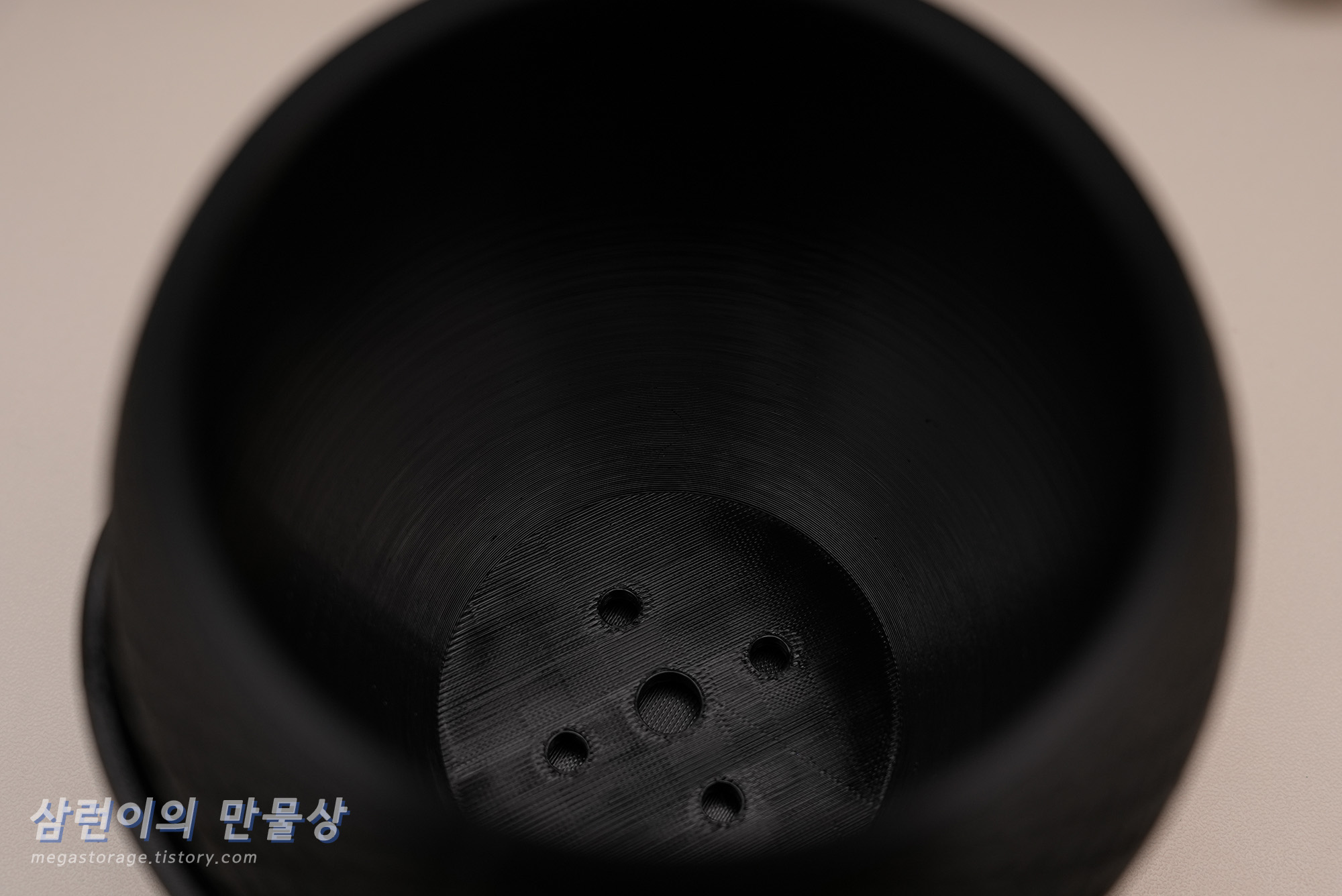화분과 받침대입니다. 화분엔 물빠짐 구멍이 있습니다. 화분과 받침대 디자인이 예술입니다. 집에 흙과 영양제가 있으니, 조만간 아름다운 꽃 하나를 심을 예정입니다.