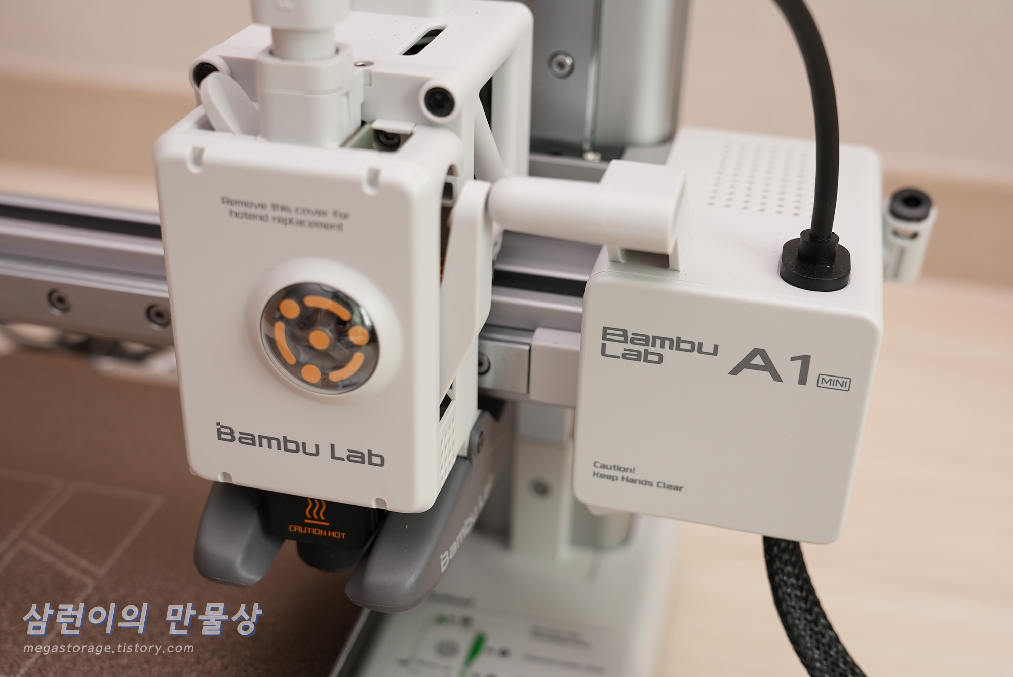 뱀부랩 A1 mini의 전원 케이블과 히트베드의 연결 케이블은 분리가 불가능한 구조입니다.