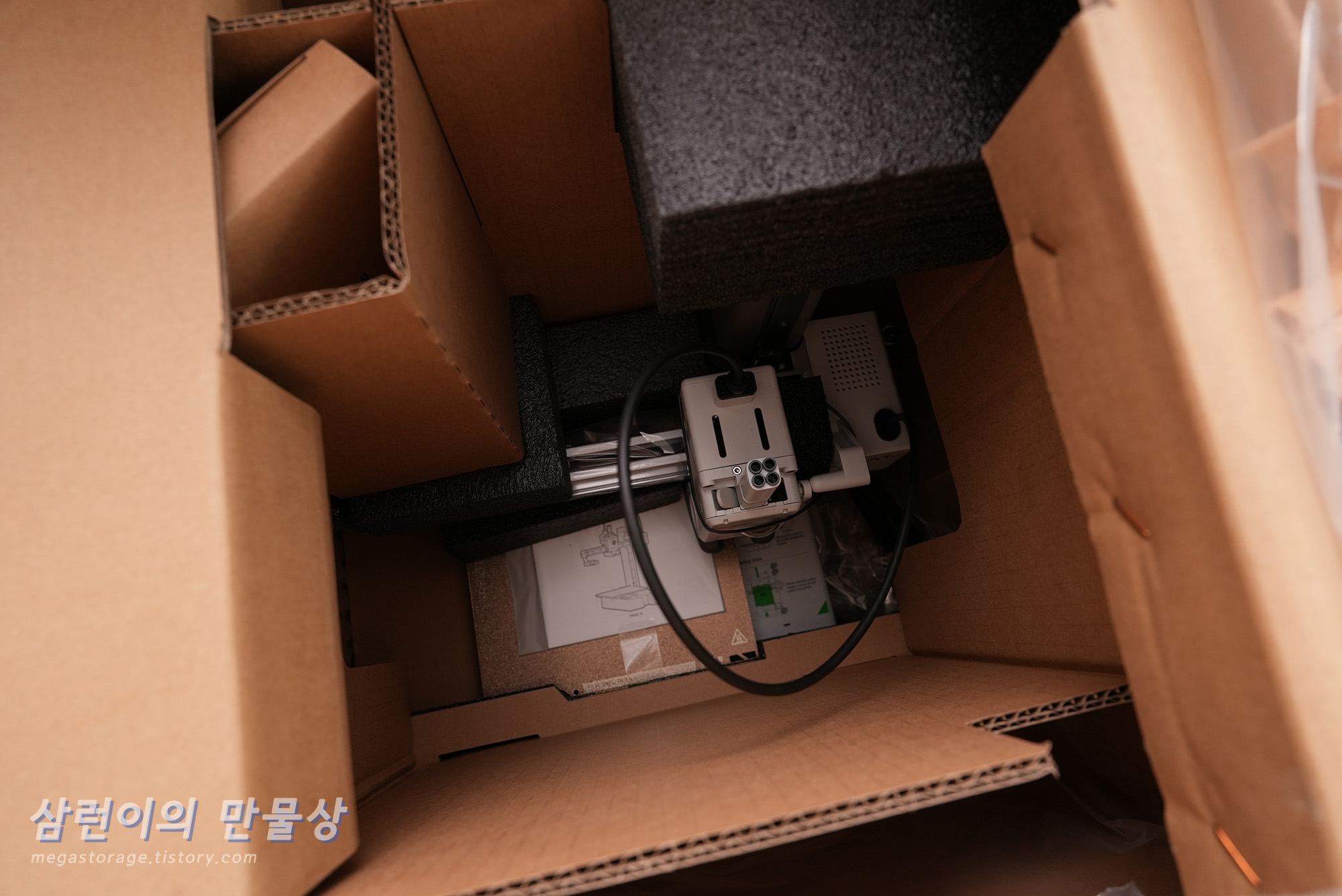 매뉴얼에는 악세서리 박스의 구성품이 있고, 최초 사용 시 Unlock의 내용대로 케이블타이 절단 및 Z-axis Limiter를 제거해야 합니다.