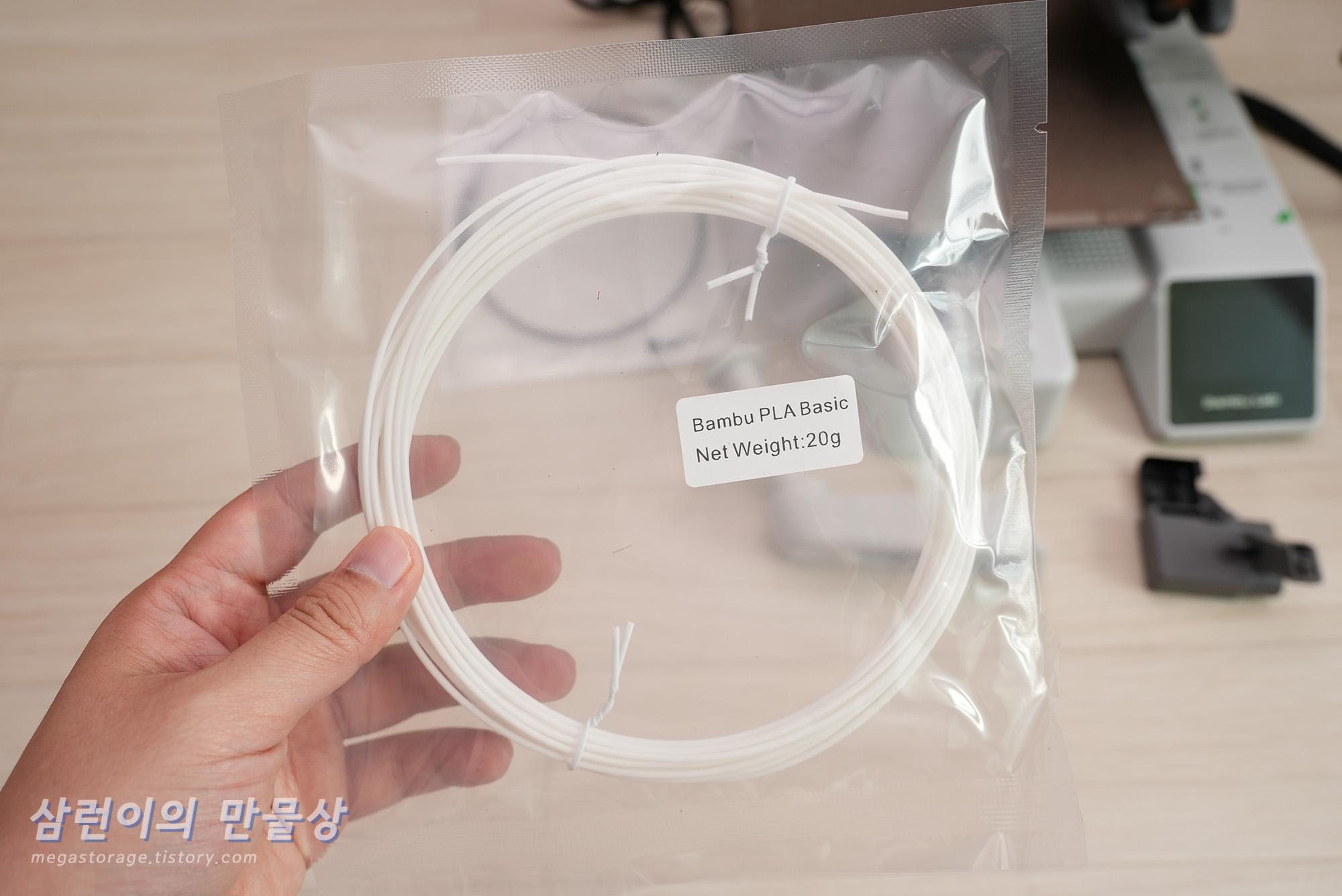 뱀부랩 PLA Basic 필라멘트 입니다. 20g 가량 샘플로 들어있습니다.