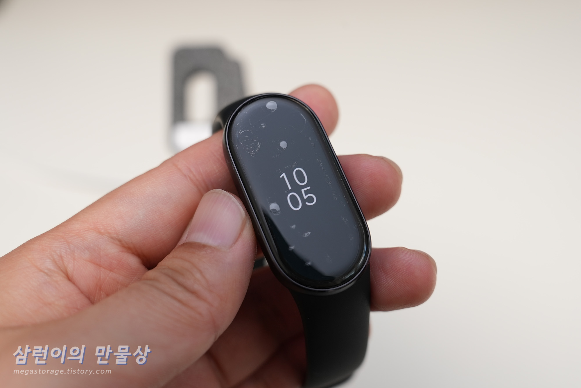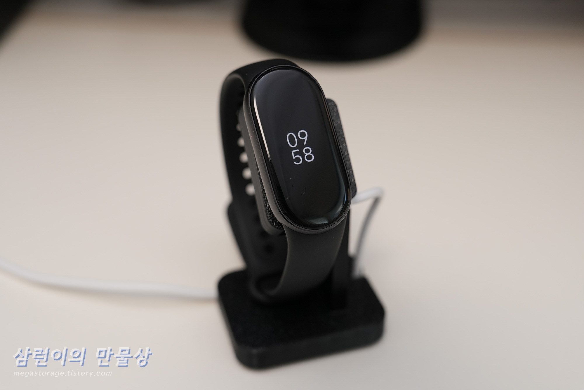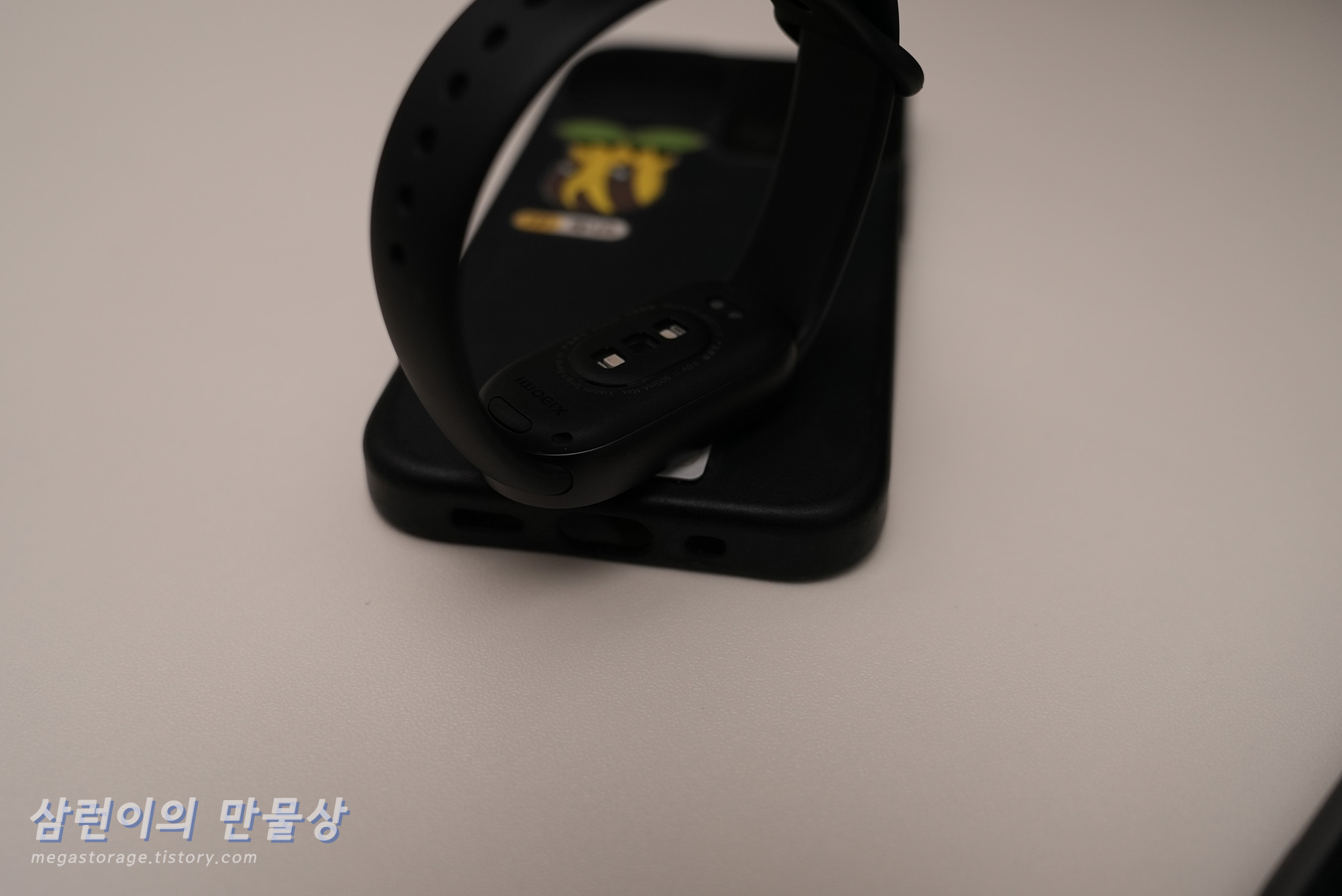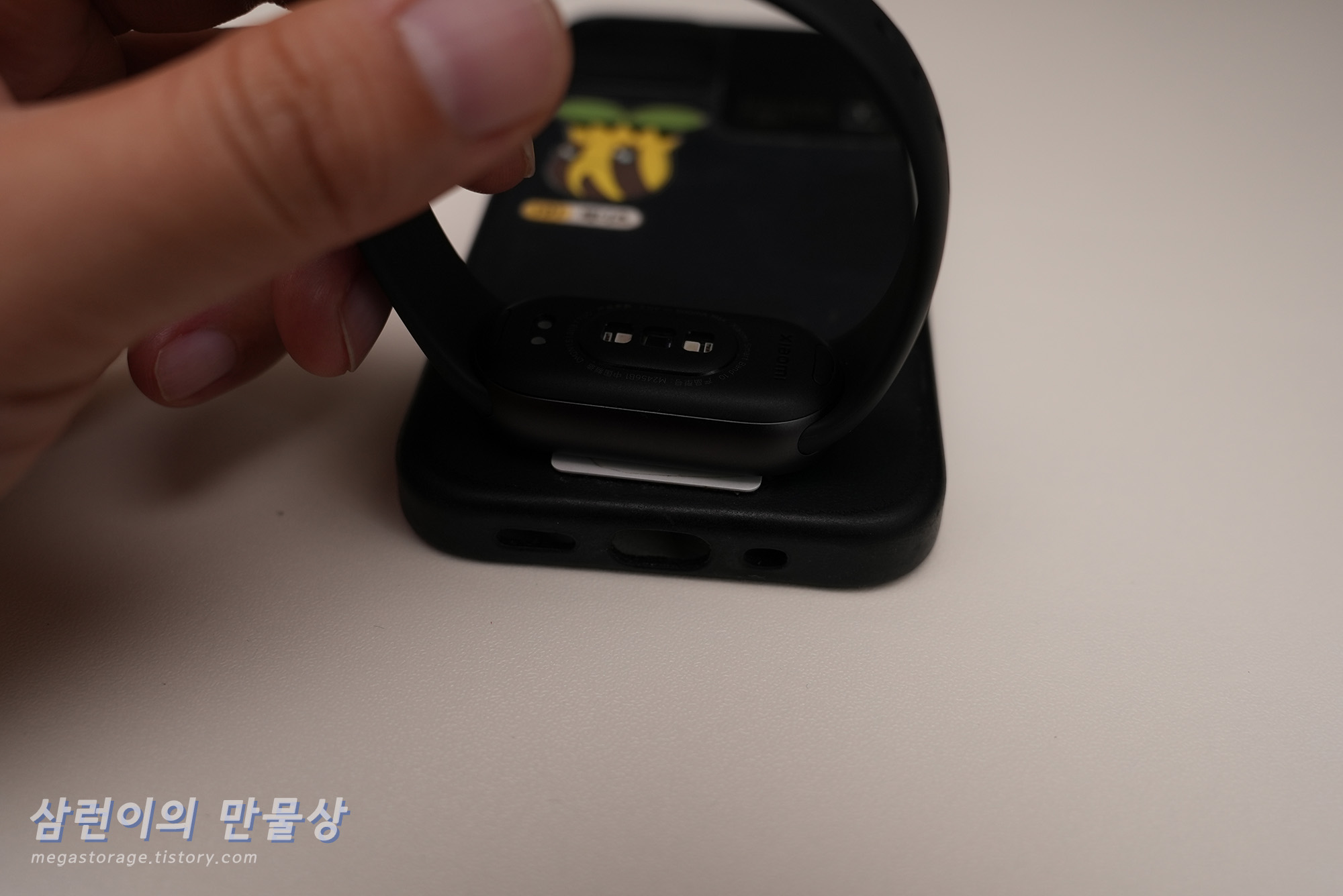 샤오미 미밴드 10을 올려두니까 자석으로 챡 달라 붙으며 안정적으로 거치되었습니다.