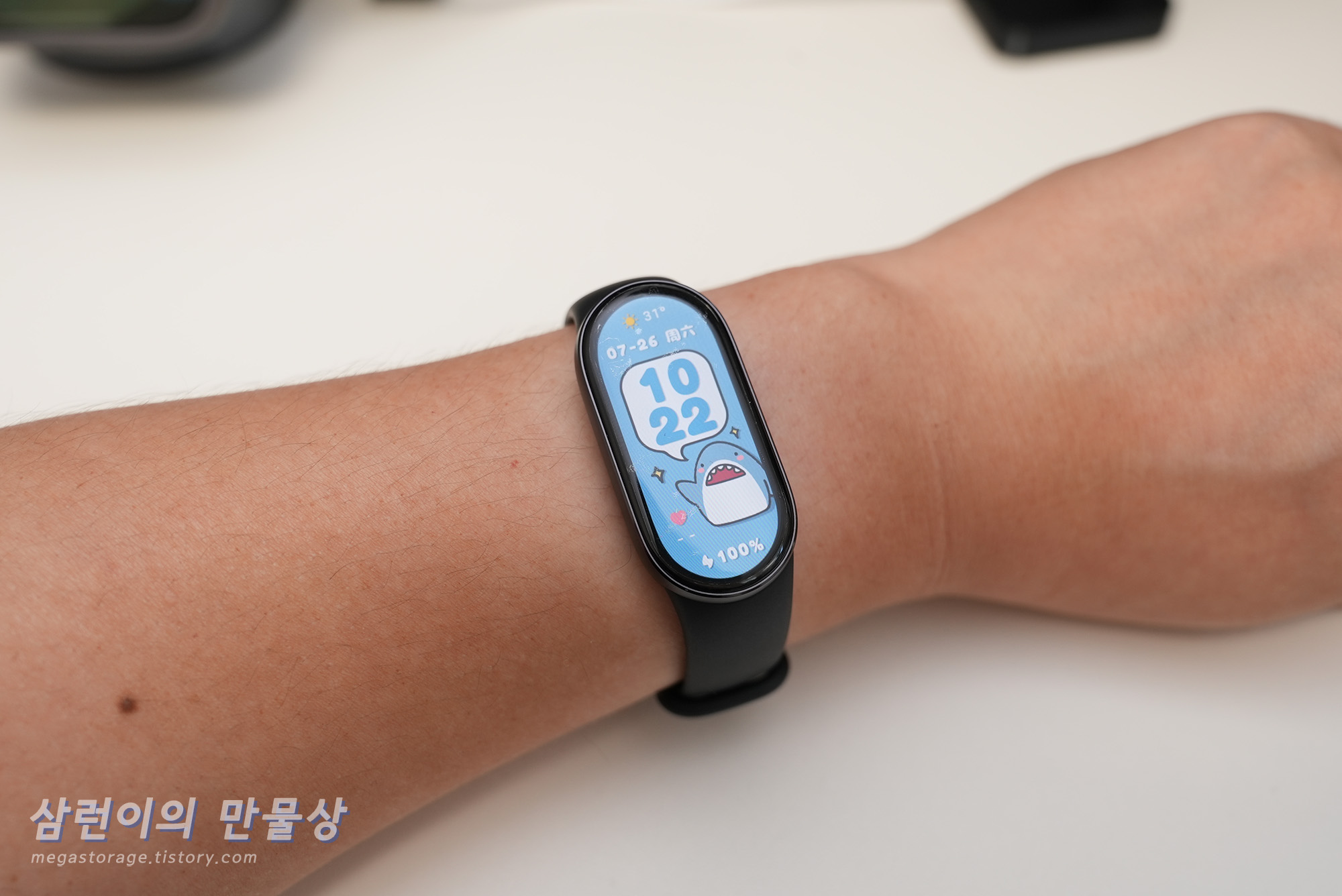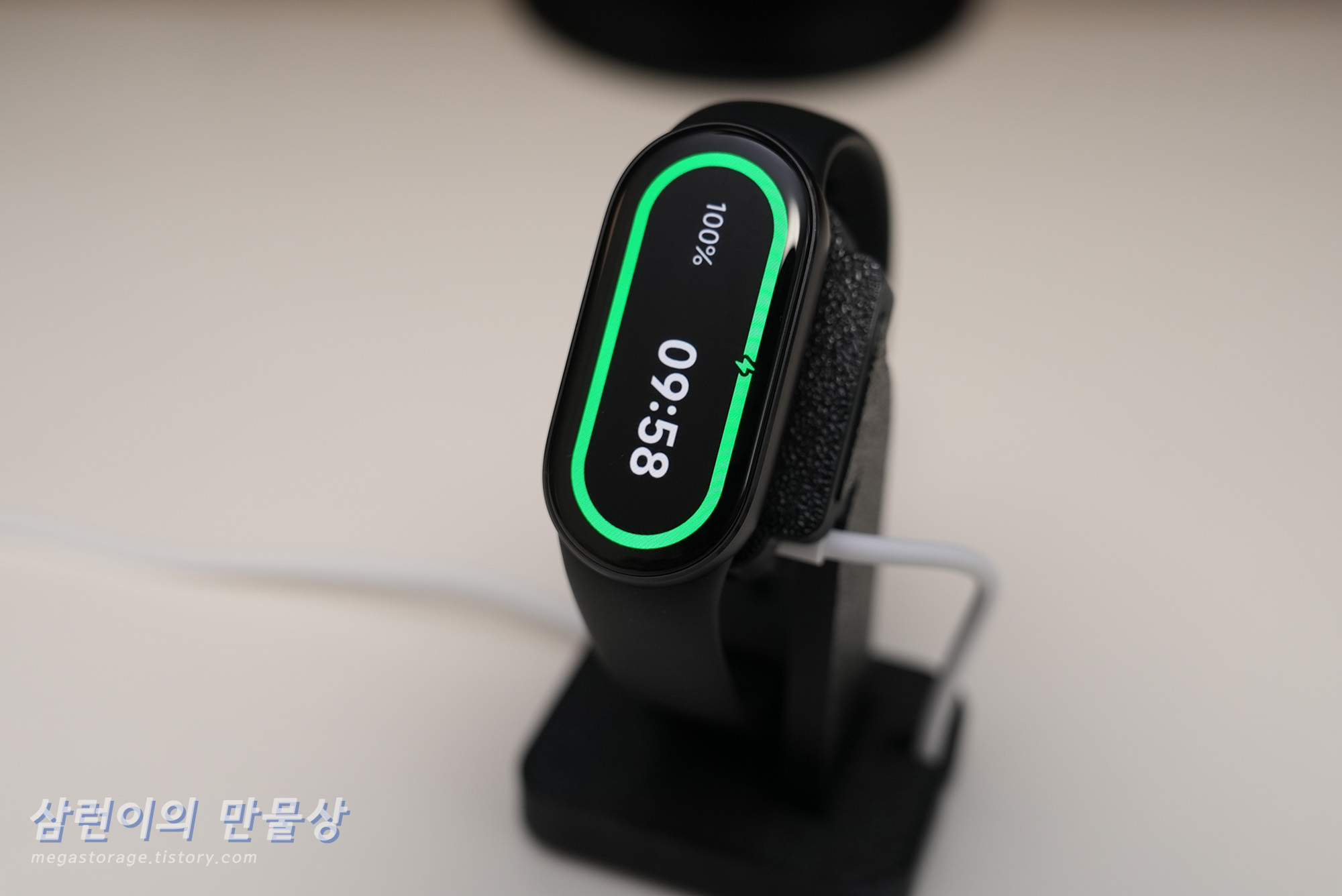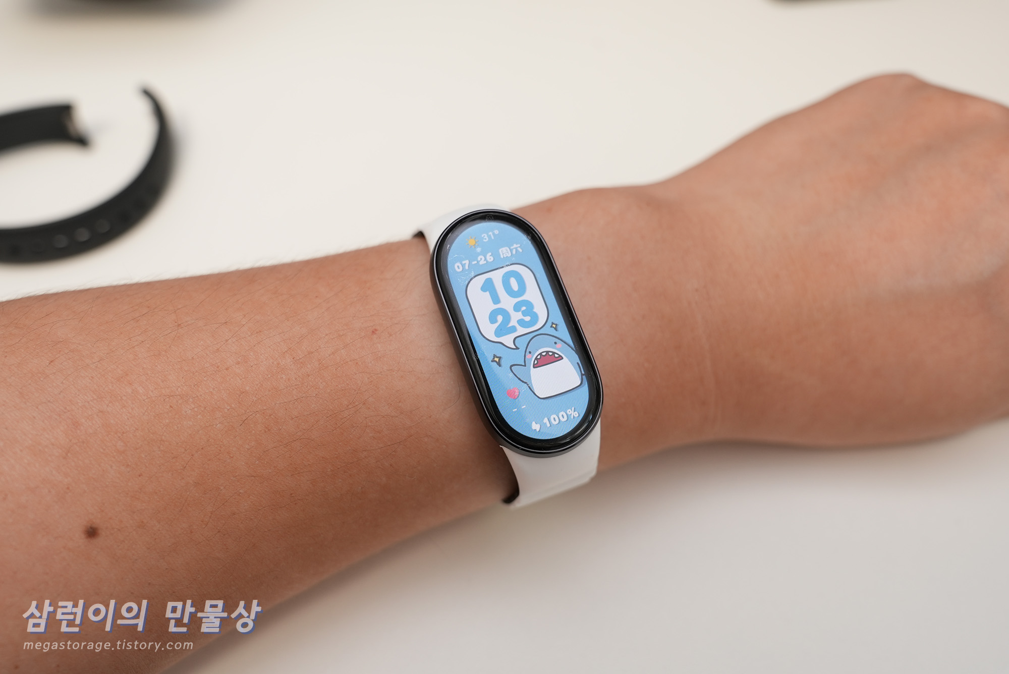 미밴드 9와 거의 비슷합니다. 디스플레이가 더 커지면서 베젤이 얇아졌고 화면 최대 밝기가 증가했다는 것이 큰 차이점입니다.