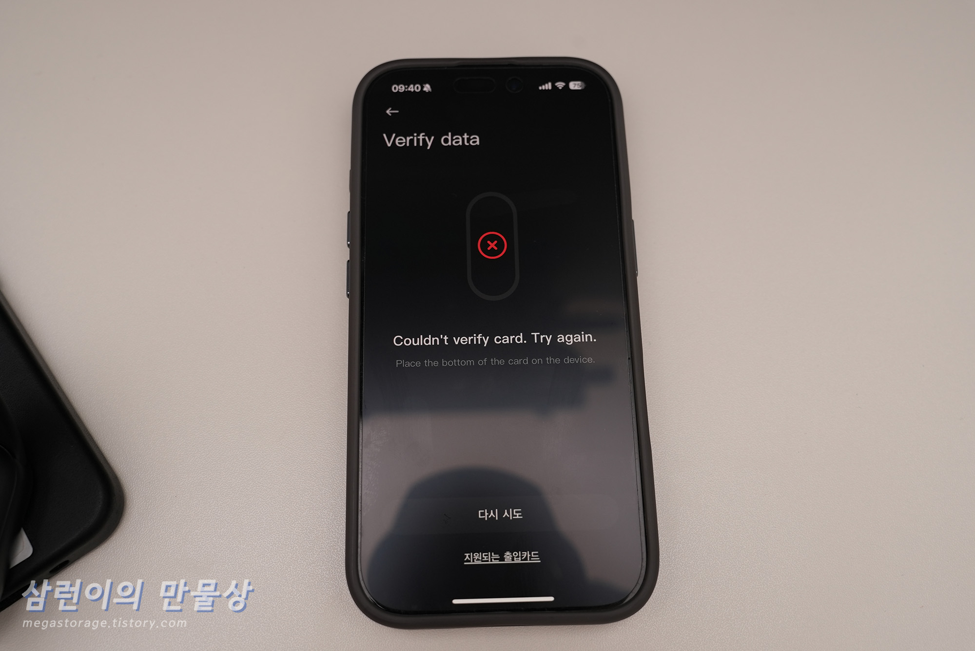 미밴드 10을 똑같이 카드키 위에 위치시킨 후 '다시 시도' 버튼을 눌러주면 됩니다.