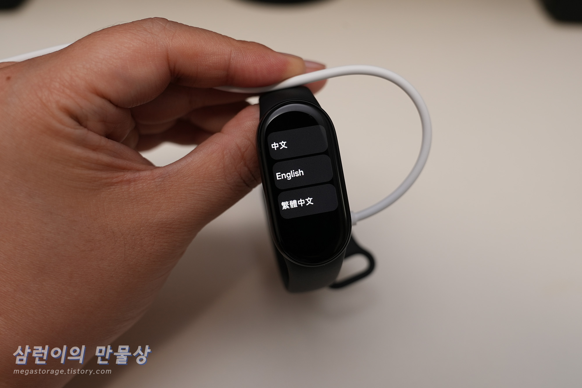 기본 셋팅을 시작해보겠습니다. 제가 구입한 샤오미 미밴드 10 NFC 모델은 중국 내수판이기 때문에 시스템 기본 언어는 중국어와 영어 중 하나만 선택할 수 있습니다.