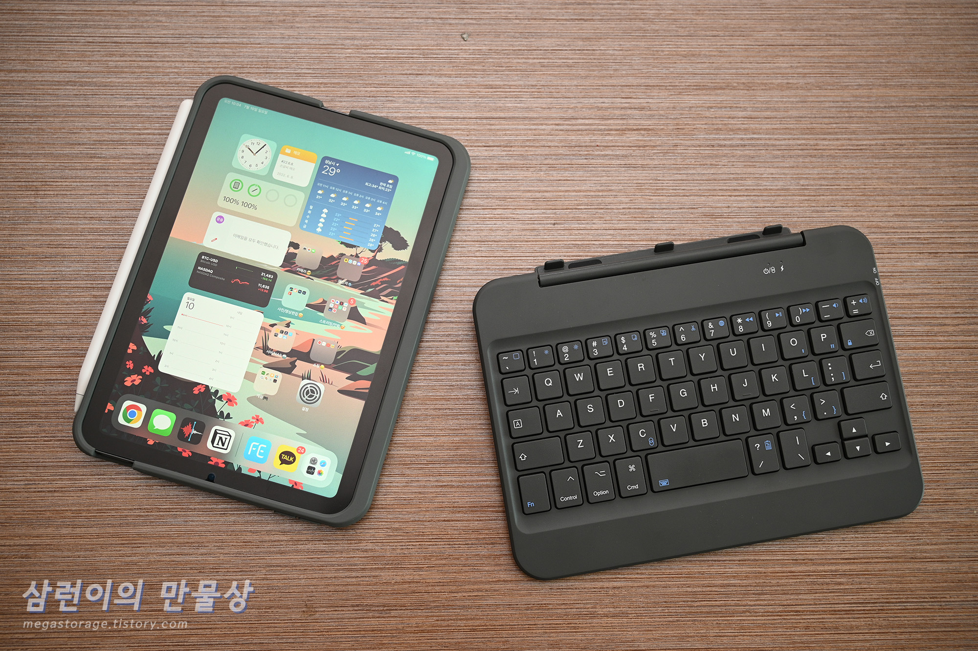 개인적으로 터치패드 작은거 하나 들어가있으면 좋을 것 같다는 생각이 들었습니다. 그리고 처음에 타이핑을 하면, 키 간격이 좁아서 오타가 꽤 날 겁니다. 이건 적응하니까 괜찮아졌습니다. 이 키보드 케이스를 대체할만한 다른 제품을 발견하지 못했고, 지금까지 꽤 만족스러워서 너무 좋습니다.