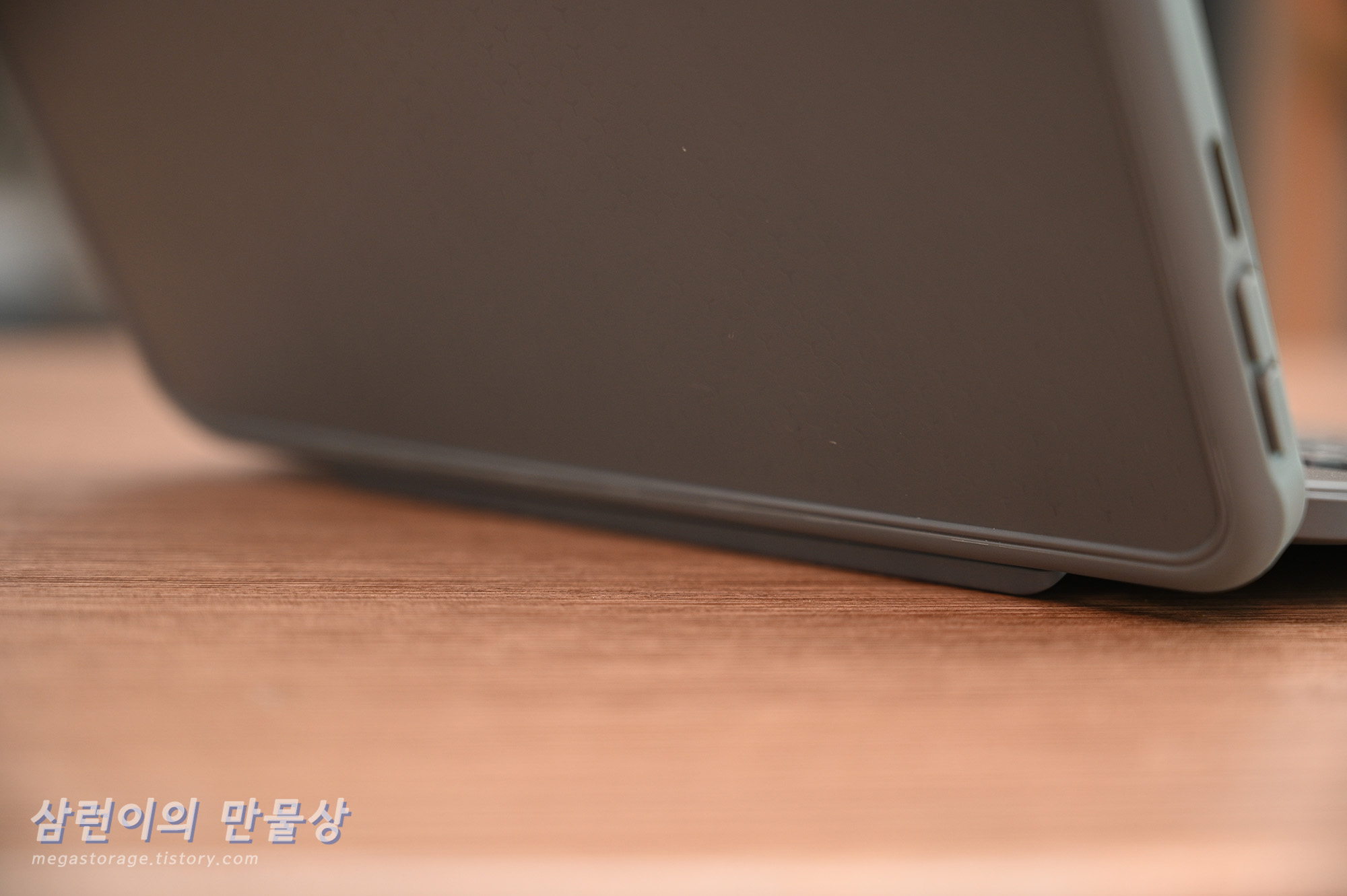 각도 유지도 매우 휼륭합니다. 힌지가 꽤 무거운 느낌이라서 키보드 케이스를 펼 땐 두 손을 써야 할 정도입니다. 흐느적 거리는 것 보단 낫습니다.
